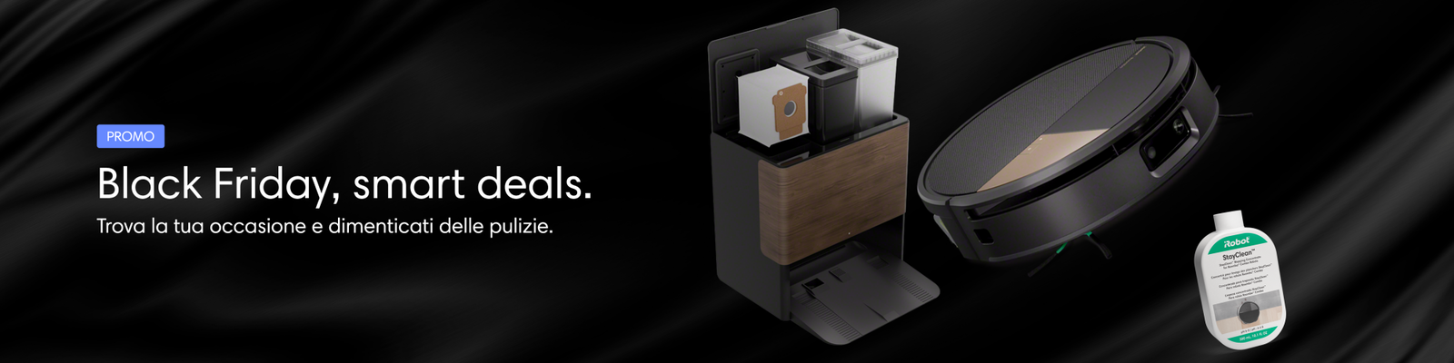 Il Black Friday è arrivato e lo store iRobot vi offre l’occasione perfetta per portare a casa la tecnologia più avanzata per la pulizia automatica. Con offerte valide fino al 1 dicembre, potrete approfittare di prezzi davvero imbattibili su una selezione dei migliori robot aspirapolvere del brand, pensati per rendere la vostra casa più pulita senza alcuno sforzo.