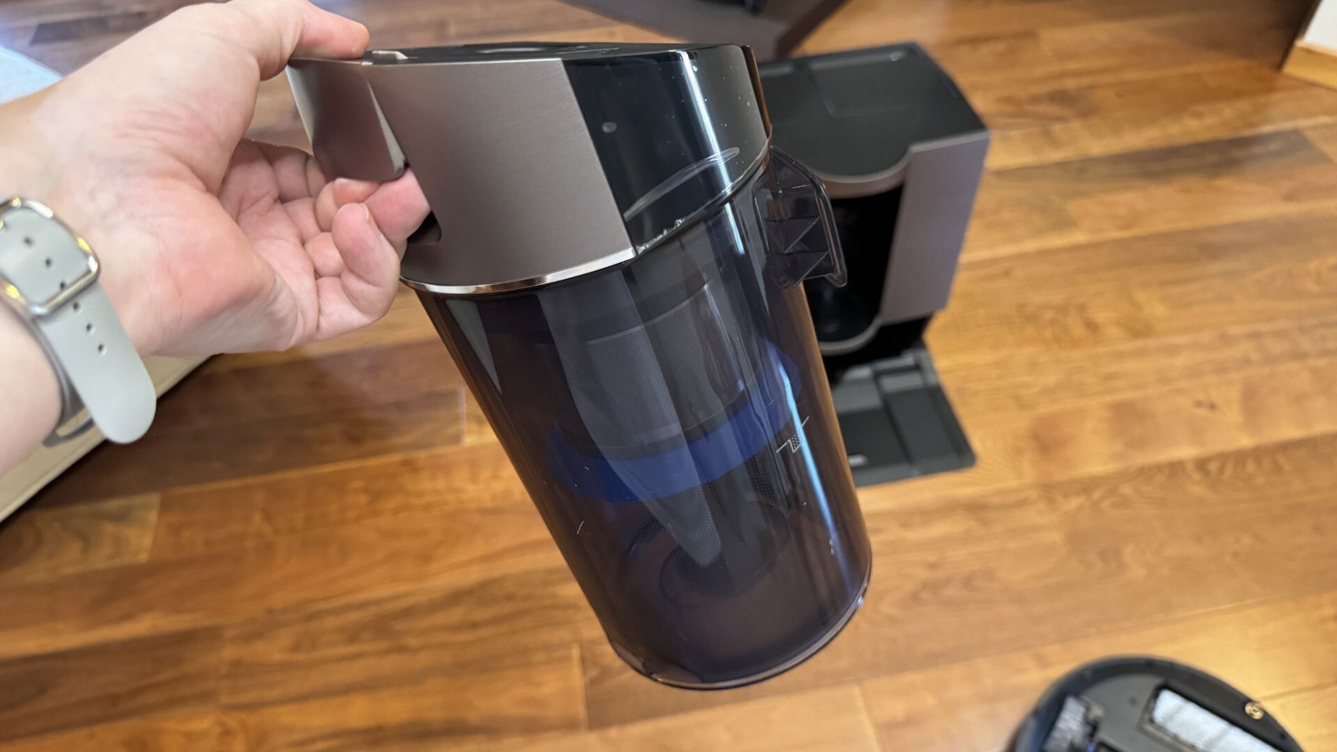 Per quanto riguarda la manutenzione, la base OmniCyclone Station mostra un vantaggio concreto: il design senza sacchetto non solo riduce i costi, ma semplifica l’operazione di svuotamento a pochi secondi, senza dover acquistare ricambi. La capacità del contenitore è sufficiente per quasi due mesi di raccolta dello sporco, durata che ovviamente può cambiare in base alla dimensione della casa e il livello di sporco. In ogni caso impiegherete veramente poco a staccare il serbatoio e svuotarlo.