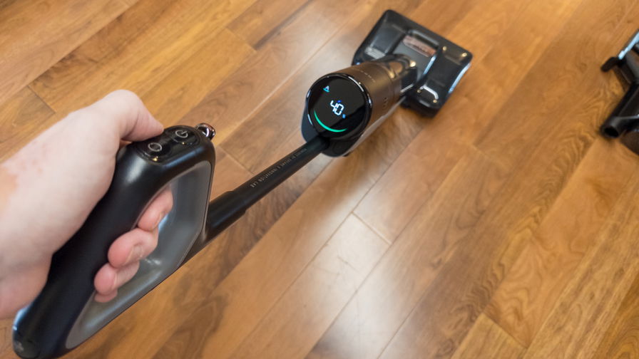 Il motore è dotato di un display LED che visualizza l’autonomia rimanente in tutti i casi; nel modulo lavapavimenti, mostra anche modalità d’uso (smart, turbo, solo aspirazione, modalità silenziosa) e un indicatore visivo “a sorriso” che cambia colore per segnalare sporco rilevato. Il sistema è anche dotato di sensori intelligenti che regolano automaticamente potenza, flusso d’acqua e concentrazione del detergente, grazie alla tecnologia denominata Smart Ratio Cleaning Solution. In funzione dello sporco rilevato, il rapporto detergente può variare da 1:200 (molto diluito) a 1:30 (molto concentrato).