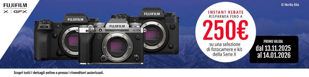 Il periodo più atteso dell’anno per gli amanti della fotografia è arrivato. In occasione del Black Friday e delle festività invernali, FUJIFILM lancia la Winter Promo 2025, la più ampia iniziativa promozionale dell’anno: fino al 14 gennaio 2026, sconti diretti e rimborsi fino a 500€ permetteranno di ampliare o rinnovare il proprio corredo con la qualità FUJIFILM.