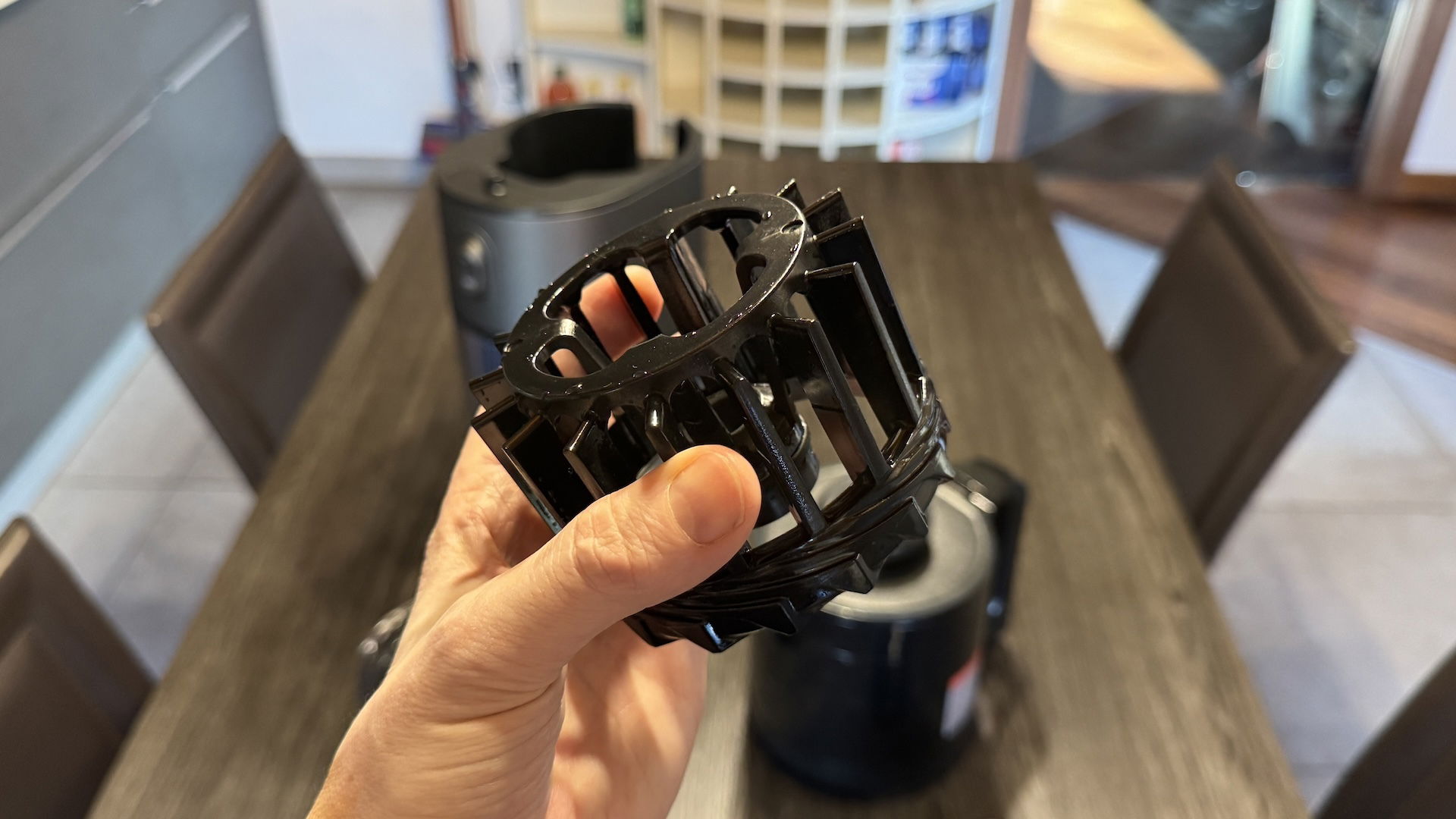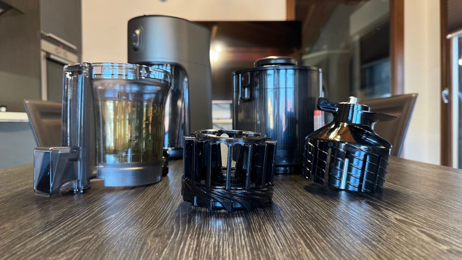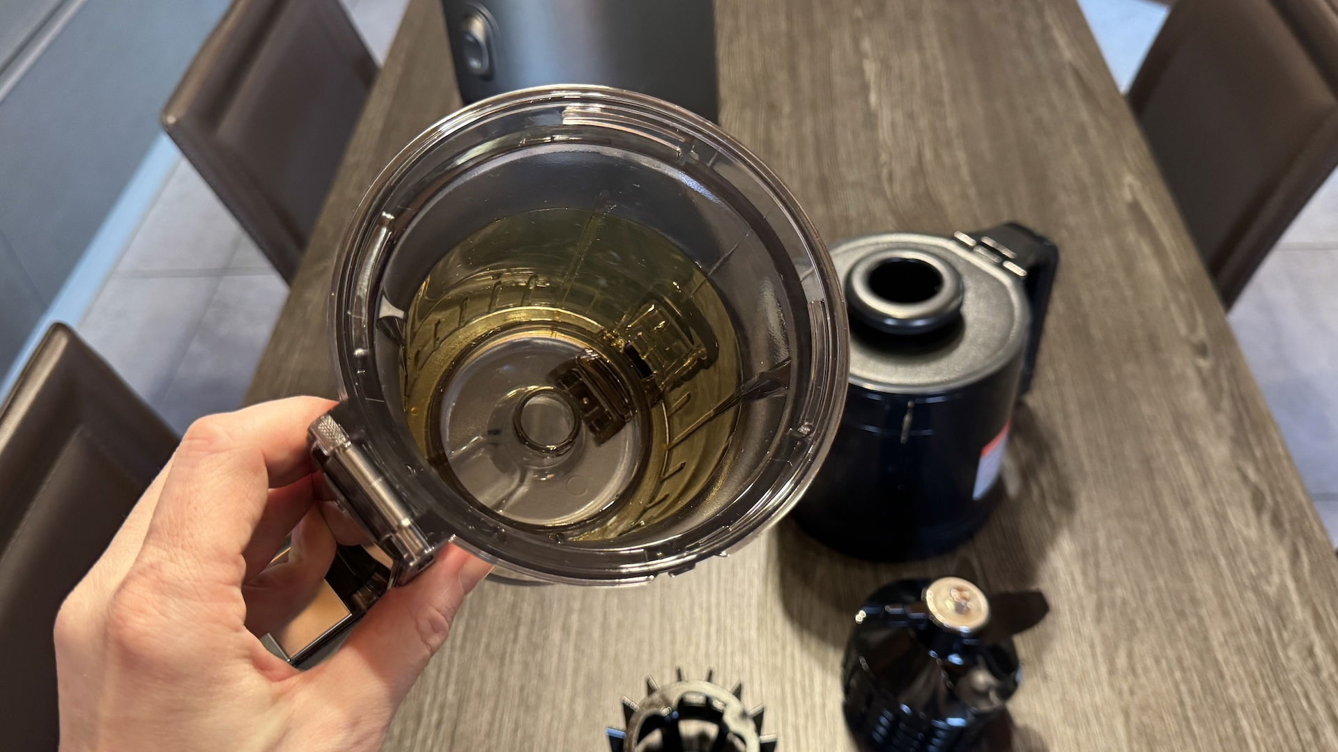 Senza dubbio il maggiore vantaggio pratico dell'H400 rispetto agli estrattori tradizionali basati su setaccio metallico risiede nella straordinaria facilità di pulizia. Dovrete smontare solo tre componenti principali: la coclea a doppio stadio che si separa in due pezzi distinti, la camera di estrazione che contiene la coclea durante il funzionamento, e i due contenitori dedicati alla raccolta del succo e della polpa. Dopodiché sarà sufficiente passarli sotto l'acqua corrente, processo che vi occuperà solo 2-3 minuti. In alternativa, potrete svuotare il serbatoio degli scarti e versare acqua, lasciando che quest'ultima trasporti tutte le fibre e pulisca l'apparecchio.