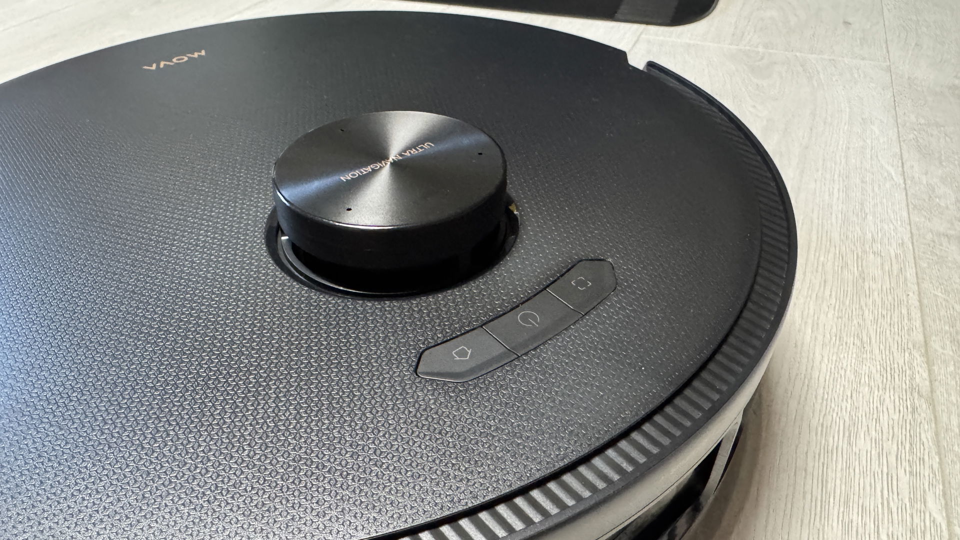 Il Mova Z50 Ultra presenta un design circolare con dimensioni di 350 x 350 x 111 mm, in linea con la maggior parte dei robot aspirapolvere di fascia alta attualmente sul mercato. La scocca superiore, realizzata in plastica di buona qualità con finitura opaca, integra una torretta LiDAR per la navigazione e una serie di pulsanti fisici per il controllo diretto delle funzioni basilari. Nella parte frontale spicca il sistema di videocamere binoculari RGB e sensori ToF (Time of Flight) che permettono al robot di identificare ostacoli e adattare il percorso di pulizia in tempo reale.