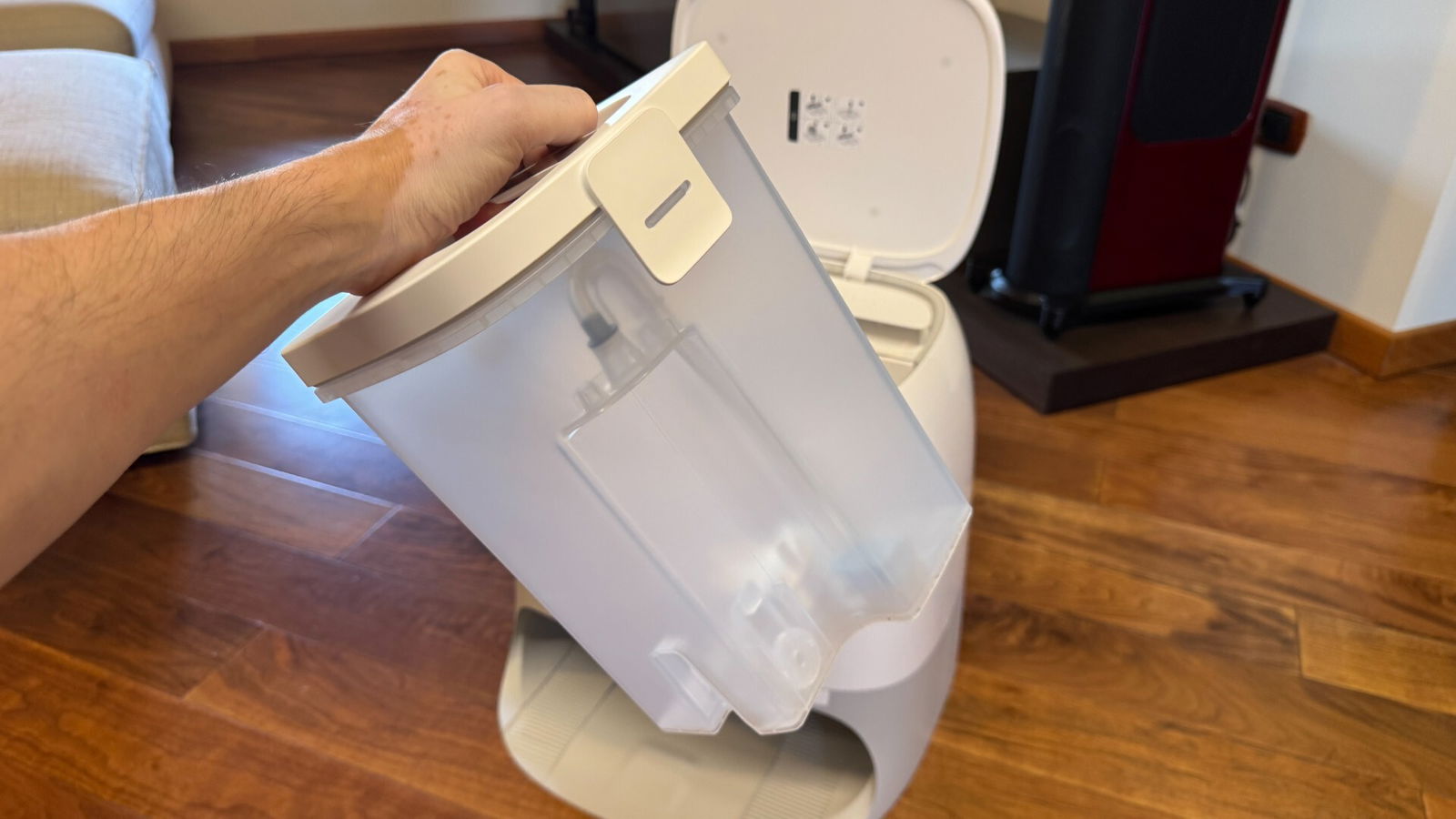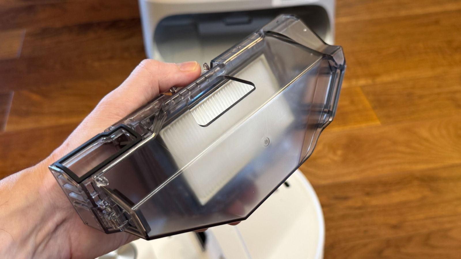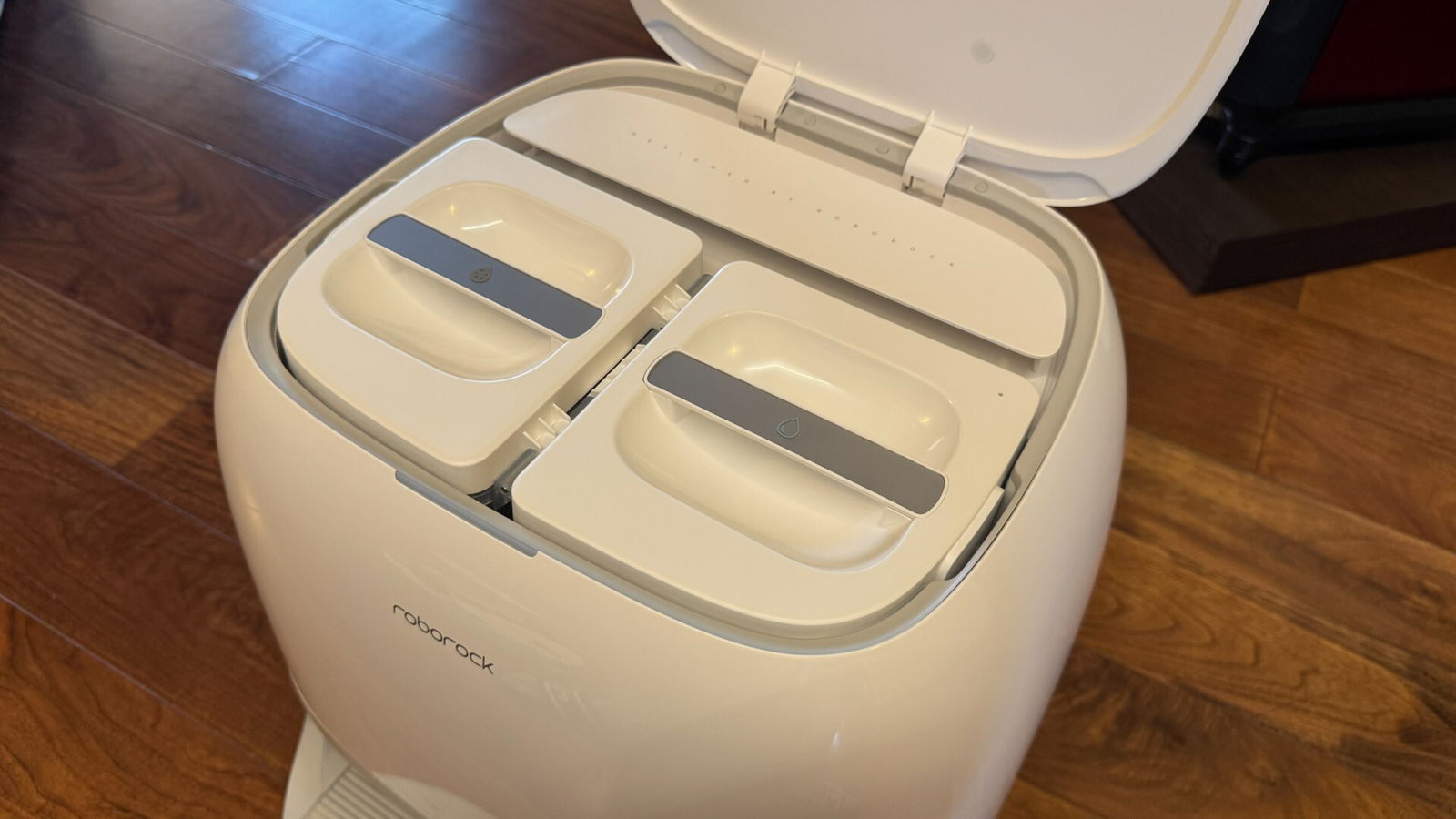 Sul fronte della manutenzione, la stazione multifunzione incide sensibilmente sul tempo richiesto all’utente. Il lavaggio a 100 °C rimuove efficacemente macchie e residui grassi dai mop, mentre l’asciugatura ad aria calda previene odori sgradevoli. Nella pratica, l’intervento umano si riduce alla pulizia periodica del vano polvere e alla rimozione di pochi peli o capelli rimasti intrappolati, un’operazione che può essere programmata su base mensile.