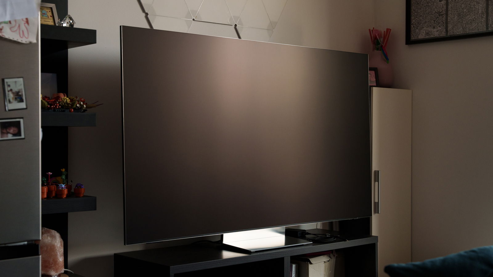 Una delle innovazioni più gradite del QN990F è l'adozione dello stesso schermo con finitura opaca visto sull'OLED S95F. Questa tecnologia è progettata per disperdere la luce ambientale e minimizzare i riflessi, e il risultato è straordinario. In una stanza ben illuminata, anche con fonti di luce dirette, i riflessi sono quasi completamente eliminati. Al massimo, si può notare una leggerissima velatura quando lo schermo è nero, ma nulla di paragonabile all'effetto specchio dei tradizionali schermi lucidi.