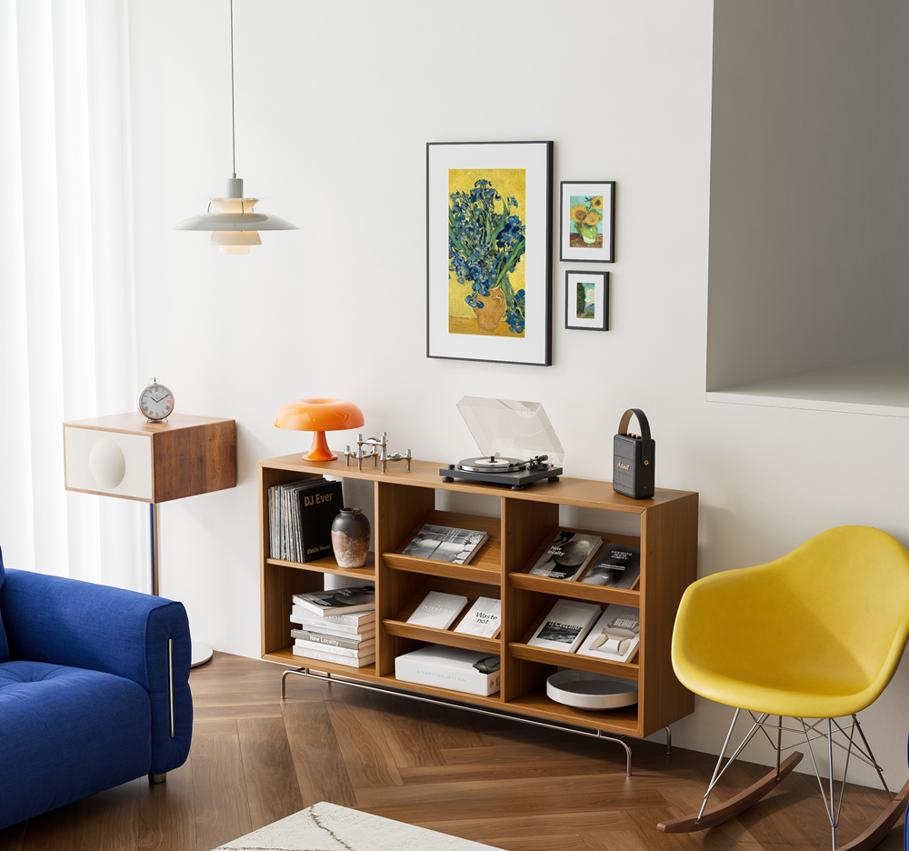 L'AI Art Frame è progettato per integrarsi in qualsiasi arredamento. Il suo design minimalista è arricchito da una struttura in lega di alluminio premium e cornici intercambiabili. Sorprendentemente, il quadro è compatibile con le cornici IKEA RÖDALM per una facile sostituzione e personalizzazione.
