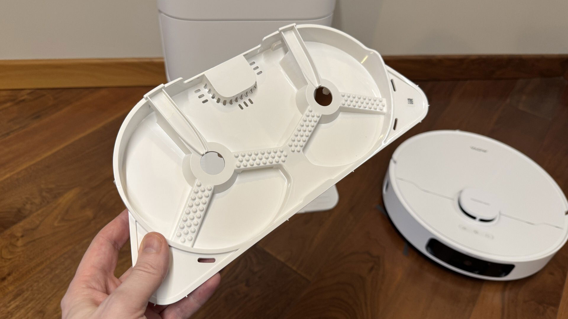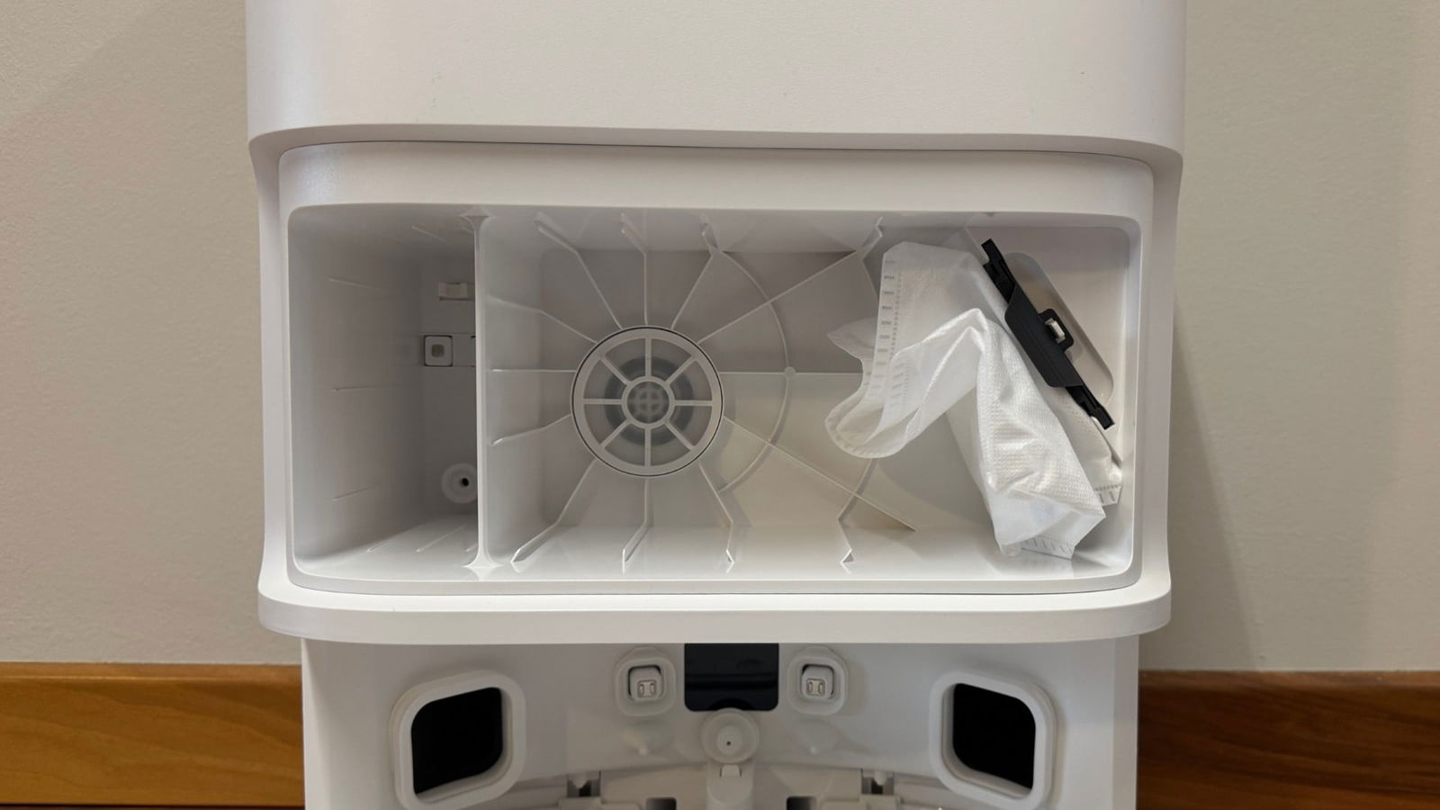 Il sistema di lavaggio impiega due panni rotativi in microfibra e il serbatoio interno da 80 ml, una combinazione che offre una qualità di lavaggio superiore a quella dei robot economici senza dosaggio interno, spesso soggetti a risultati irregolari. L'app permette di selezionare 32 livelli di erogazione dell’acqua, offrendo una personalizzazione molto precisa. Su polvere, briciole e residui leggeri i risultati sono molto buoni; sulle macchie incrostate come caffè secco o fango asciutto, invece, è necessario un secondo passaggio o l’uso di detergente aggiuntivo. Dopo il lavaggio, l’asciugatura tramite aria calda richiede generalmente 2-4 ore a seconda delle impostazioni.