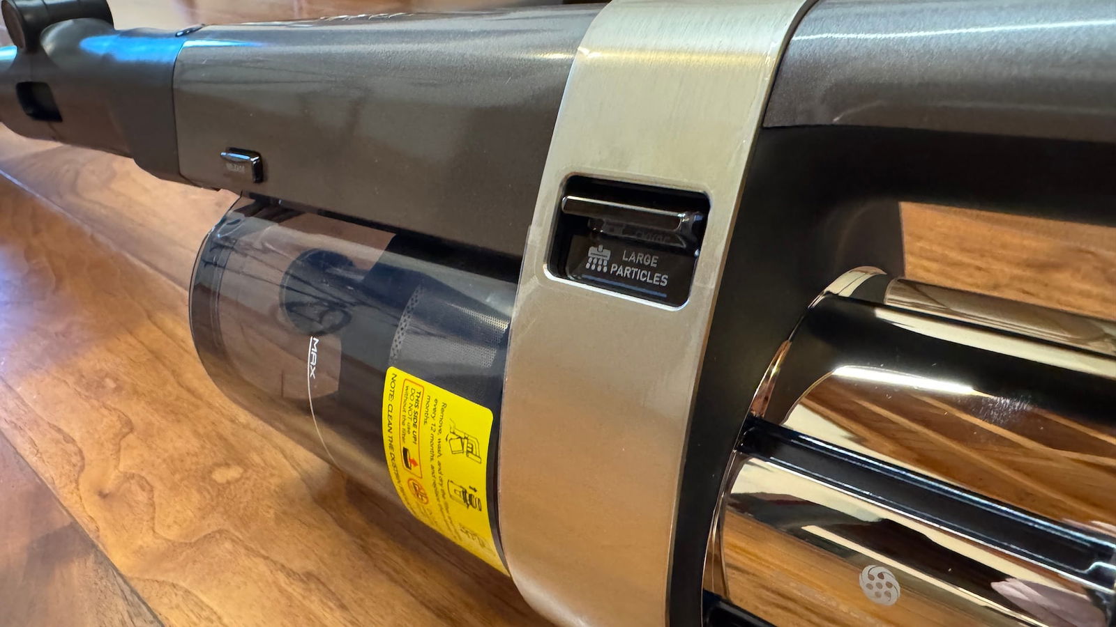 Dal punto di vista della potenza, la PURE ONE A90S raggiunge i 270 air-watt, un valore tipico delle macchine di fascia alta e nettamente superiore ai modelli mainstream. Nonostante la forza aspirante elevata, la gestione dei consumi è ottimizzata grazie alle modalità Eco, Auto e Max, selezionabili tramite il pannello LED. La batteria garantisce fino a 105 minuti di autonomia in modalità Eco (con l’accessorio giusto) e può essere rimossa facilmente, così da permettere la sostituzione o l’uso di una batteria aggiuntiva per prolungare la sessione di pulizia. Il contenitore della polvere ha una capacità di 0,8 litri ed è progettato per essere svuotato in pochi secondi, senza procedure complicate.