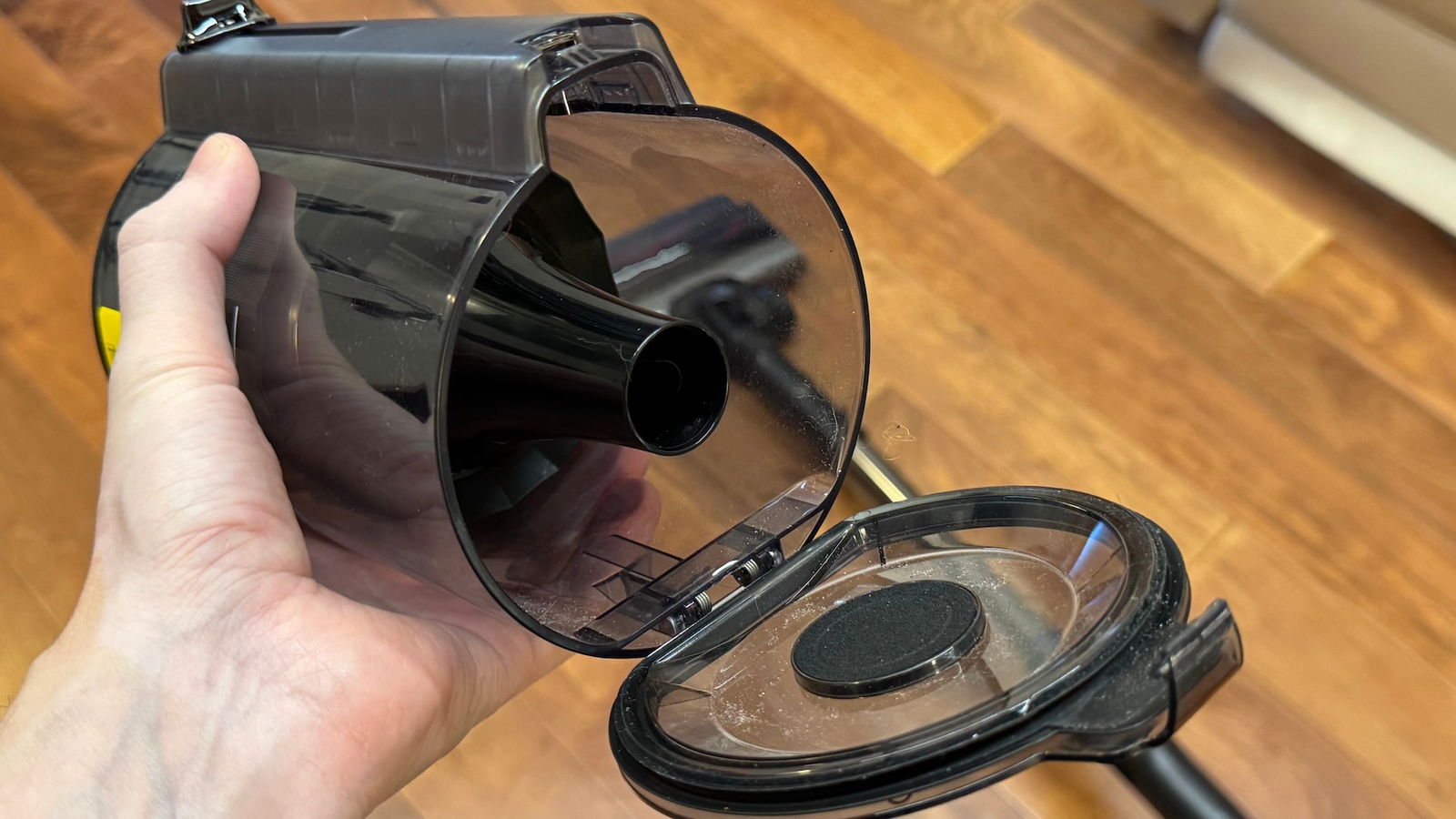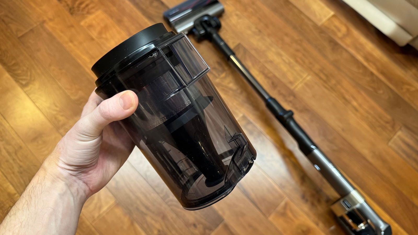 Tuttavia, l’esperienza non è perfetta in ogni situazione. Quando si vuole usare per pulire angoli alti o soffitti, risulta piuttosto pesante. Inoltre, in modalità Max l’aspirapolvere diventa abbastanza rumoroso. Il display inoltre mostra solo la percentuale di carica, non i minuti residui stimati, il che rende meno intuitivo sapere quanto resta prima di dover ricaricare.