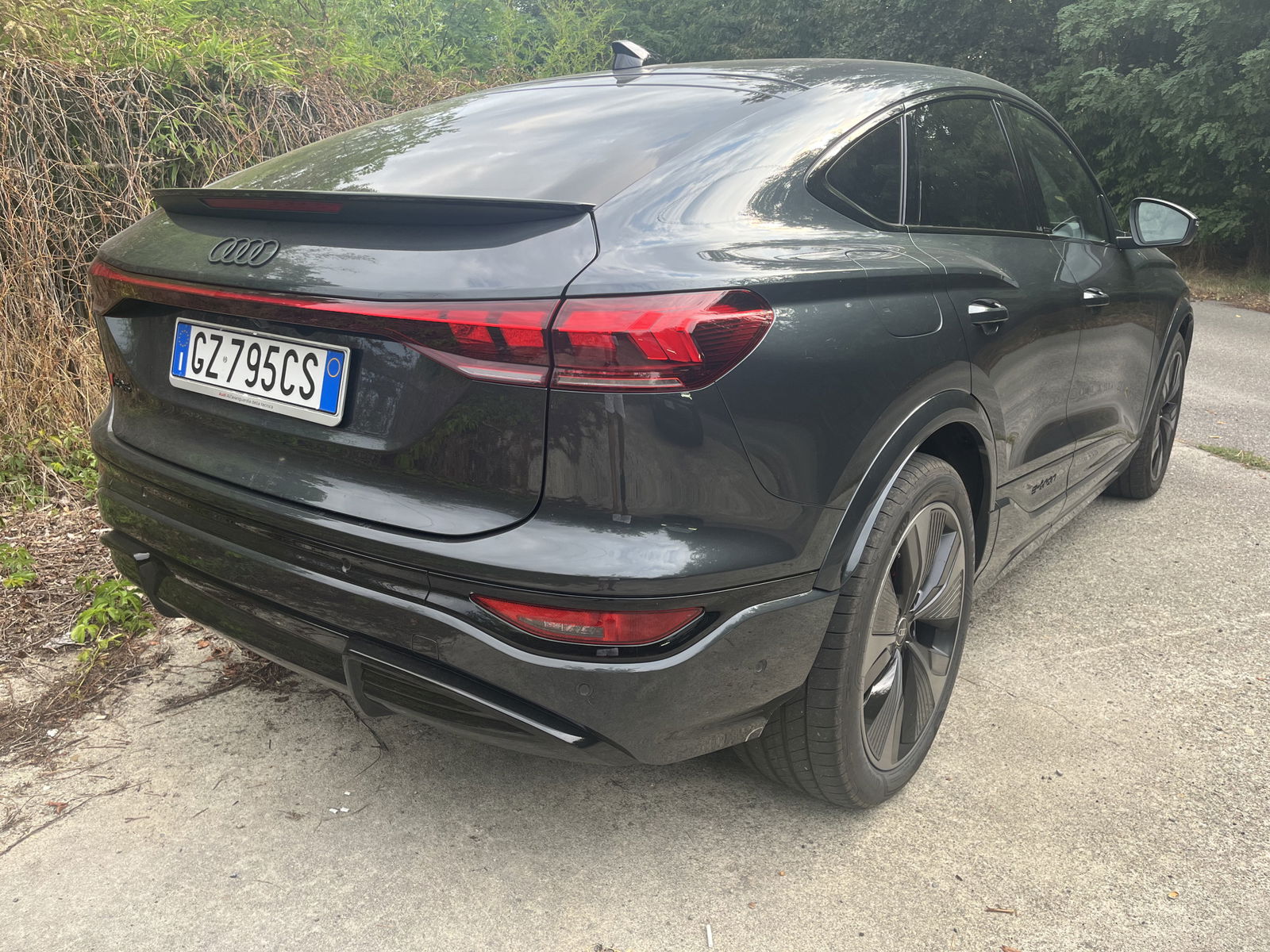 Quello che affascina subito della SQ6 Sportback è la sua capacità di essere spettacolare senza risultare eccessiva. Le forme sono scolpite con attenzione: cofano lungo, fiancate imponenti e coda spiovente che dona dinamismo. I dettagli non mancano, dai gruppi ottici OLED posteriori, che creano giochi di luce personalizzabili, alle prese d’aria che sottolineano la sportività.