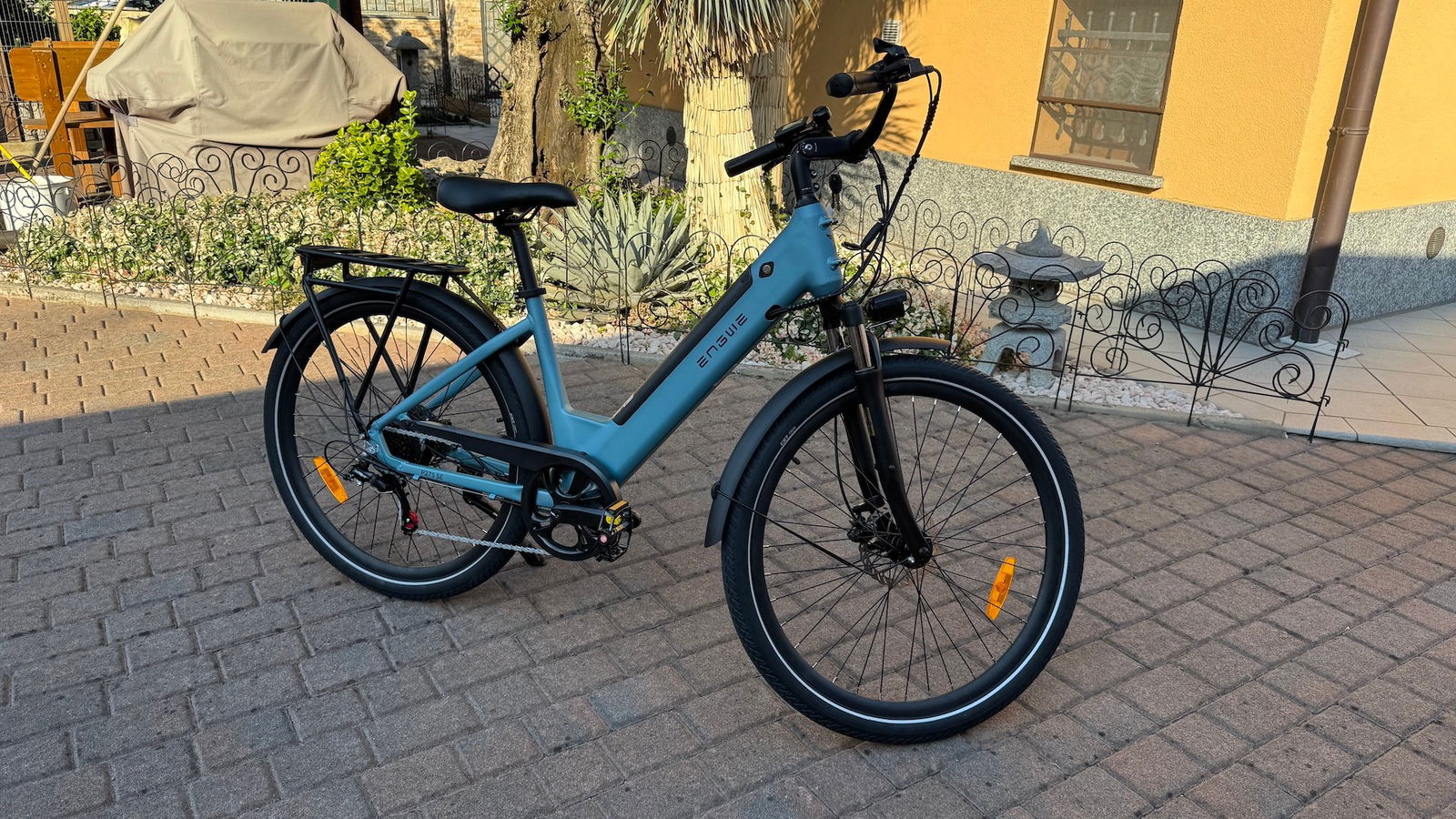 La Engwe P275 SE si distingue per un design pulito e funzionale, con un telaio step-through in lega di alluminio 6061 che agevola la salita e la discesa dalla bicicletta. La struttura presenta saldature accurate e finiture di buon livello, con un peso complessivo di 24,4 kg che, pur non essendo tra i più contenuti della categoria, risulta gestibile per una e-bike. La certificazione IP54 garantisce una resistenza adeguata a polvere e schizzi d'acqua, rendendo la bicicletta utilizzabile anche in condizioni di pioggia leggera.