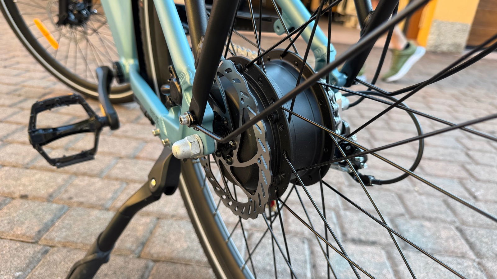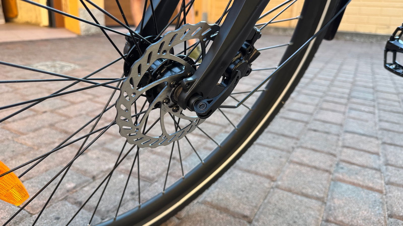 I freni a disco idraulici offrono una potenza frenante rassicurante anche in condizioni di bagnato, con una buona modulabilità che permette di dosare la frenata con precisione. La presenza del motore centrale non introduce particolari anomalie nella frenata, a differenza di quanto può accadere con i motori al mozzo posteriore.