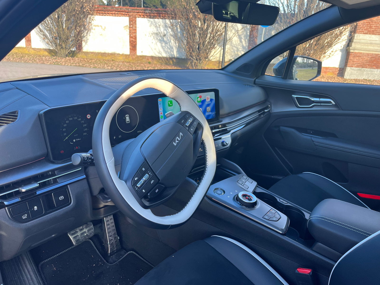 Dentro, la Sportage mostra un salto qualitativo rispetto alla generazione precedente. I due ampi display da 12,3″ per cruscotto e infotainment offrono una grafica moderna e una buona leggibilità, con integrazione wireless di Apple CarPlay e Android Auto.