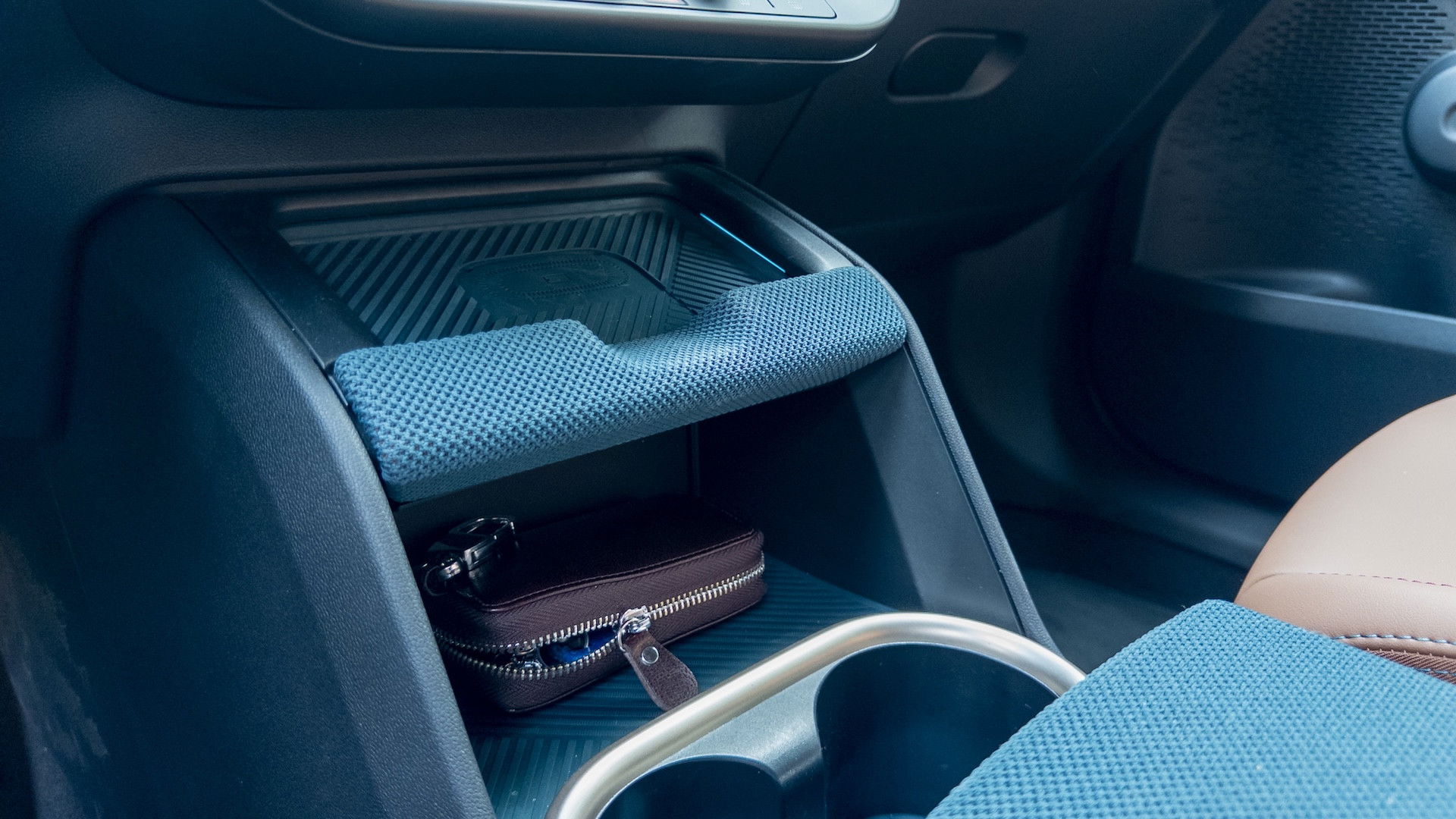 I due porta bicchieri anteriori, classici per la Mini, sovrastati da due supporti, uno per lo smartphone (con ricarica wireless) e quello sotto per altri oggetti, comodo per appoggiare chiavi od occhiali. I dettagli sono tanti, ad esempio il vano per lo smartphone ha un piccolo svaso nel bordo anteriore che permette di afferrarlo meglio; sono dettagli che non si vedono spesso, e soprattutto in questo caso funzionano. Anche il piccolo contenitore posizionato tra i due sedili, con chiusura meccanica, sarà apprezzato. Peccato che il poggia gomito centrale non integri un porta oggetti.