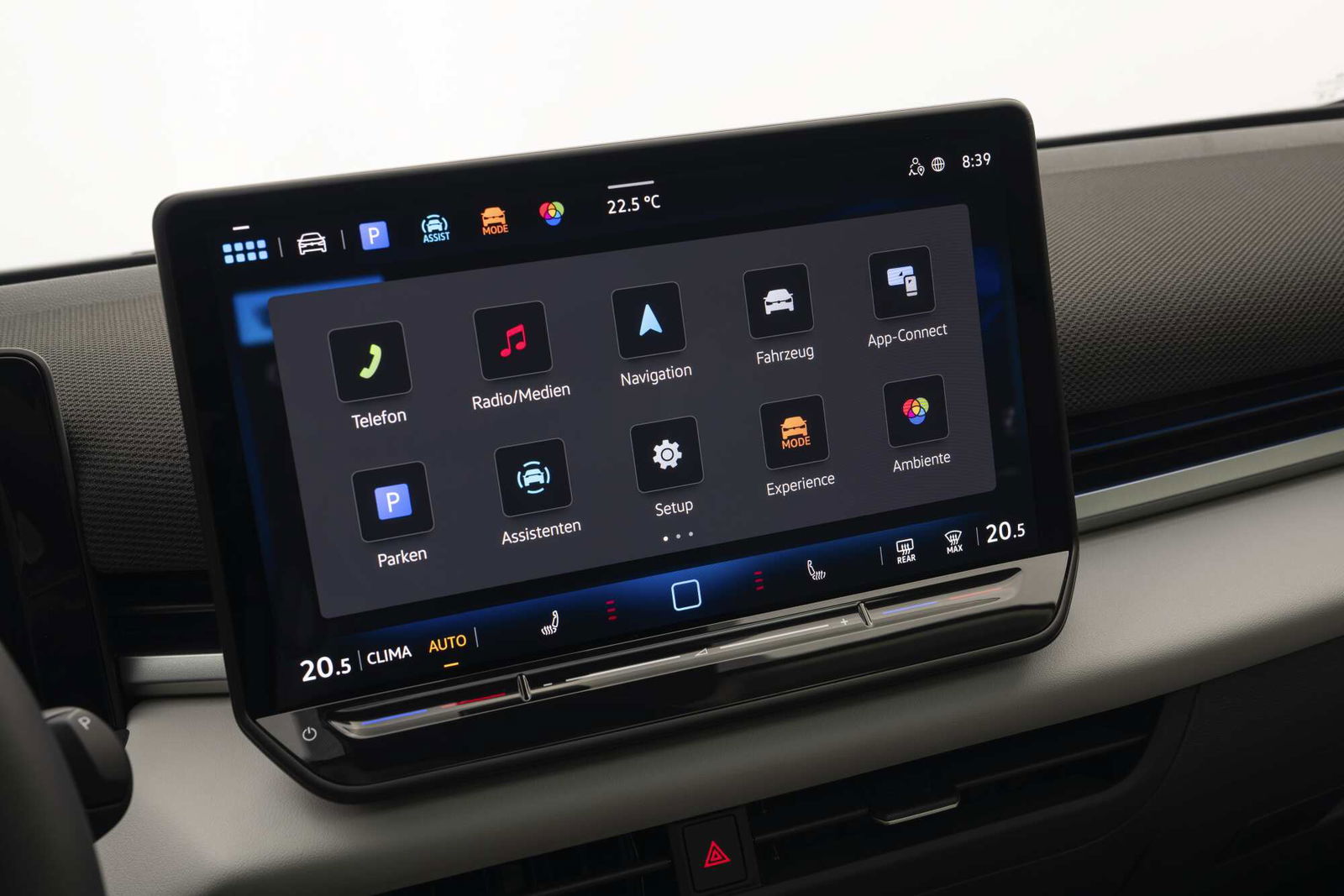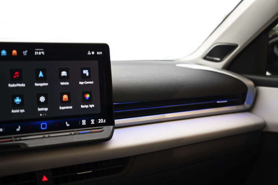 Il Digital Cockpit Pro di ultima generazione domina la scena, affiancato dal Windshield Head-Up Display mutuato da modelli superiori come Tiguan e Tayron. Ergonomia e comfort sono stati affinati: dalle nuove maniglie integrate nei braccioli al sedile ergoActive con regolazioni elettriche a 14 vie e funzione massaggio, disponibile per la prima volta su questo modello.