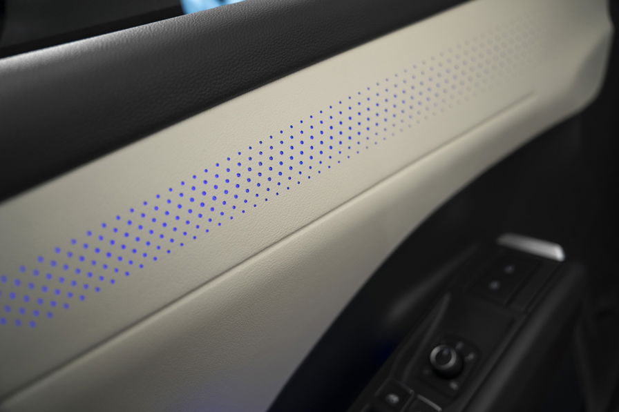 Se fuori la T-Roc appare più elegante e dinamica, dentro compie un vero salto di qualità. La plancia è rivestita con materiali soft-touch e tessuti inediti che creano un’atmosfera lounge, mentre un’illuminazione ambientale diffusa attraverso superfici in similpelle traforata dona un tocco futuristico.