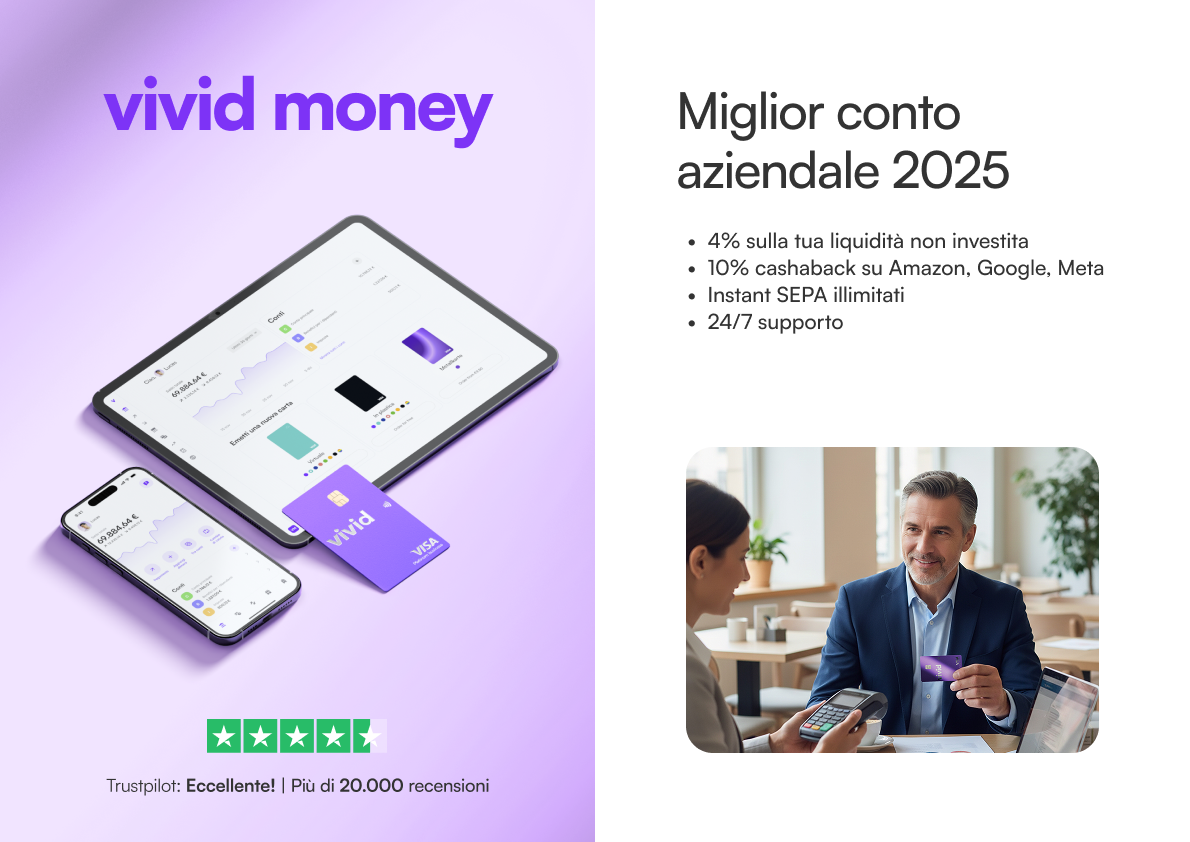 In questo articolo approfondiamo come un conto aziendale digitale come quello di Vivid possa migliorare l’efficienza operativa, ridurre i costi nascosti, generare rendimenti sulla liquidità e semplificare la vita quotidiana di chi guida un’attività in Italia e in Europa.