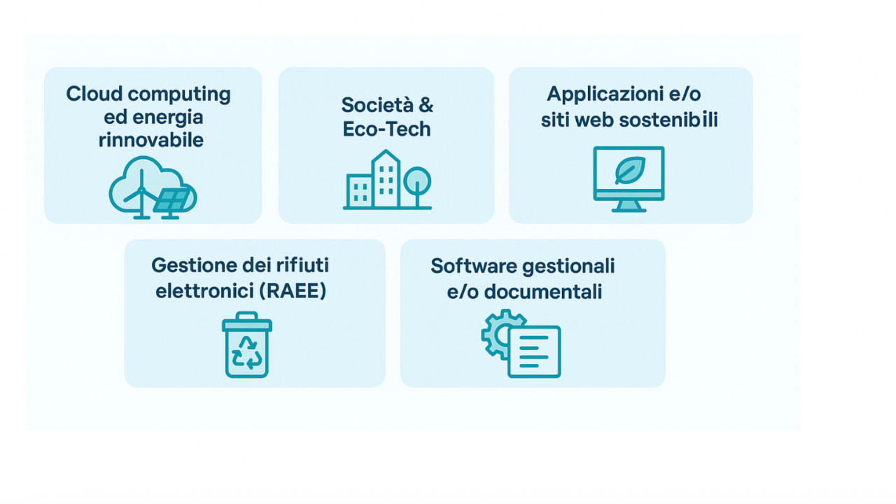 - Software gestionali e/o documentali: Queste soluzioni aiutano le aziende a ridurre costi e sprechi, sostituendo la carta con processi digitali tracciabili. Non solo permettono di risparmiare risorse (carta, toner, spazio fisico), ma rendono visibili i punti critici dei processi aziendali, dove si generano inefficienze o scarti inutili. In questo modo contribuiscono sia alla sostenibilità ambientale sia alla competitività dell’impresa. Ne sono un esempio il software gestionale Business Cube di NTS Informatica o il software documentale ARXivar di AbleTech.