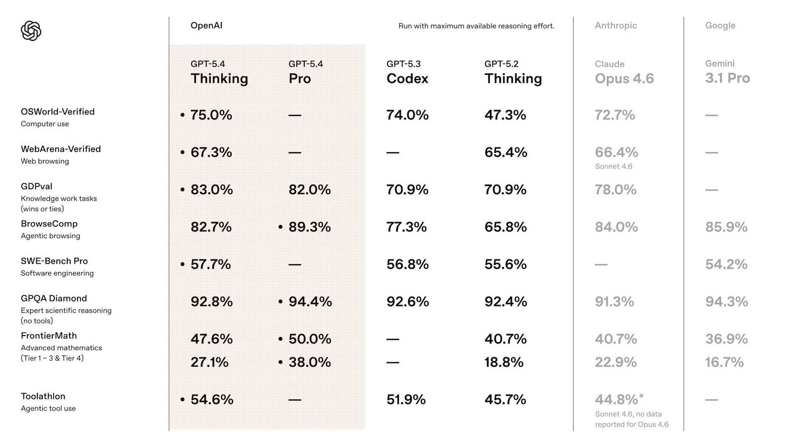 GPT-5.4 standard, senza suffisso Thinking, resta nell'ecosistema per chi ha bisogno di latenza minima senza ragionamento esteso.