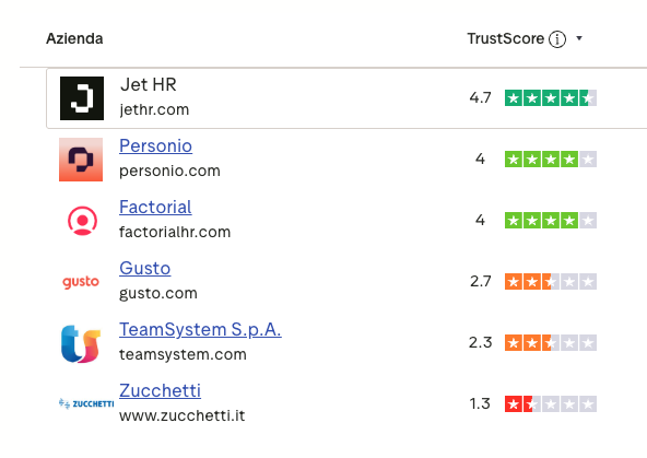 L’azienda non possiede un profilo ufficiale su Trustpilot, fonte delle recensioni di Jet HR.