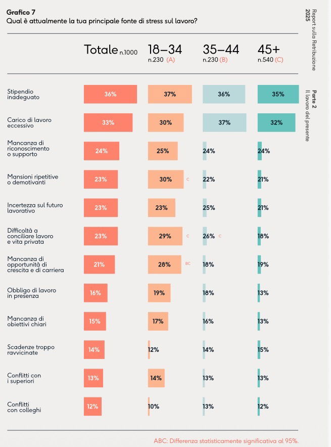 Il fenomeno degli stipendi sostanzialmente fermi aggrava ulteriormente la situazione. Il 60% dei lavoratori non ha registrato alcun cambiamento nel proprio pacchetto retributivo negli ultimi due anni, mentre appena il 33% ha beneficiato di un aumento. L'insoddisfazione complessiva tocca il 78% dei dipendenti, che assegnano al proprio pacchetto retributivo un voto medio di 5,66 su 10, in leggero calo rispetto al 2024. Come evidenziato da Guffanti, questo malessere non deriva da semplici percezioni, ma da dati concreti: in un contesto di inflazione significativa, gli stipendi medi non sono stati adeguati, determinando un progressivo arretramento del potere d'acquisto.