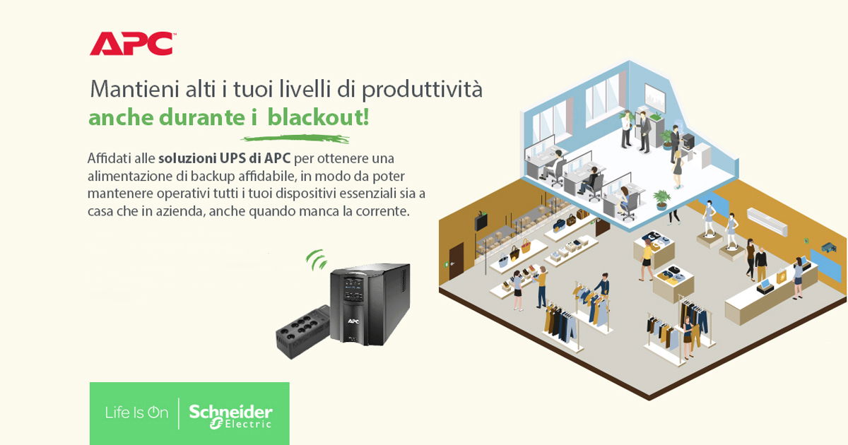 La linea Back-UPS rappresenta una scelta eccellente per proteggere una singola postazione di lavoro; monitora la linea elettrica e, al rilevamento di un'anomalia, commuta istantaneamente l'alimentazione sulla batteria interna. Per un livello di protezione superiore, la gamma Smart-UPS prevede diverse tecnologie. Ad esempio la tecnologia "Line-interactive" integra un microprocessore che monitora costantemente la qualità dell'alimentazione e, grazie a un regolatore di tensione automatico, è in grado di correggere attivamente le fluttuazioni senza dover attingere all'energia della batteria, preservandola per le emergenze reali e garantendo un'alimentazione più stabile e pulita ai carichi collegati.