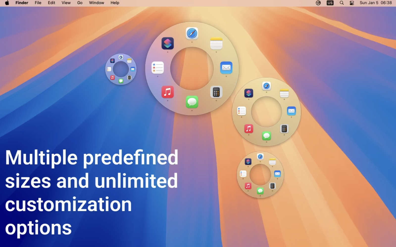 Si attiva con una scorciatoia (di default ⌘⌥) e mostra un cerchio di applicazioni personalizzabili attorno al cursore del mouse. Perfetto per chi ama avere sempre sottomano una manciata di applicazioni che usa costantemente e magari utilizza il dock a comparsa.