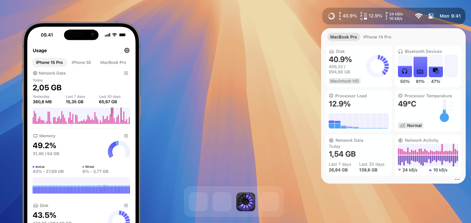 L’utility "Attività di sistema" di macOS è indubbiamente completa ma risulta da sempre poco intuitiva per l’utente medio. Usage prende le stesse informazioni e le presenta in modo chiaro e leggibile: memoria libera, CPU occupata, batteria residua, spazio su disco. Ideale per chi vuole tenere sotto controllo il proprio Mac senza perdersi tra grafici e funzioni più complesse. È gratuito, con una versione Pro esclusivamente pensata per chi vuole sincronizzare i propri dati su più dispositivi.