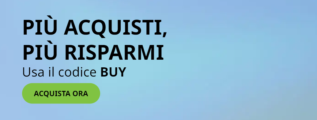 Per beneficiare di questi vantaggi basta utilizzare il codice promozionale BUY al momento del pagamento. Inserendolo nel carrello, il sistema applicherà automaticamente lo sconto corrispondente al vostro ordine. È un processo semplice e immediato, pensato per rendere la vostra esperienza di acquisto ancora più conveniente.
