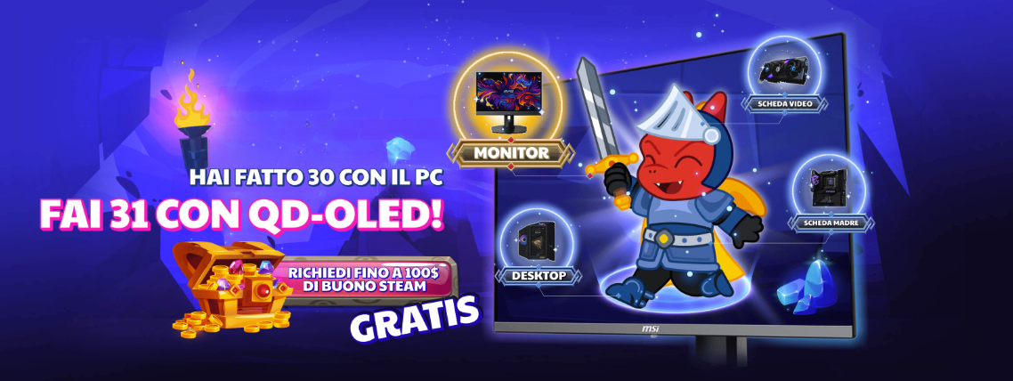 Se siete alla ricerca di un nuovo monitor gaming QD-OLED che unisca prestazioni di altissimo livello e un’offerta davvero imperdibile, la nuova promozione di MSI è pensata proprio per voi. L’azienda ha infatti annunciato “hai fatto 30 con il PC, fai 31 con QD-OLED”, una campagna valida per tutto il mese di settembre che vi permetterà di ricevere un buono Steam del valore di 100$ acquistando un monitor MSI della serie MPG QD-OLED.