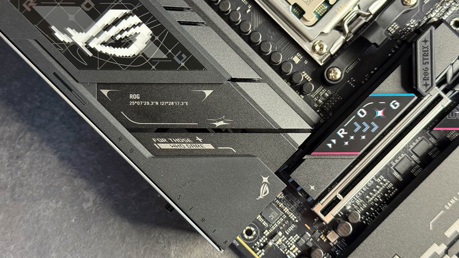 Il tipico design ROG Strix si manifesta attraverso lamelle diagonali, finiture in alluminio spazzolato e un sistema di illuminazione RGB personalizzabile. Per questa generazione, ASUS ha introdotto diffusori traslucidi sulla cover I/O e sulla matrice Q-Release, che creano un bel contrasto con i dissipatori metallici; le grafiche ricordano gli arcade del passato, donando un aspetto ancor più “gaming” al prodotto.