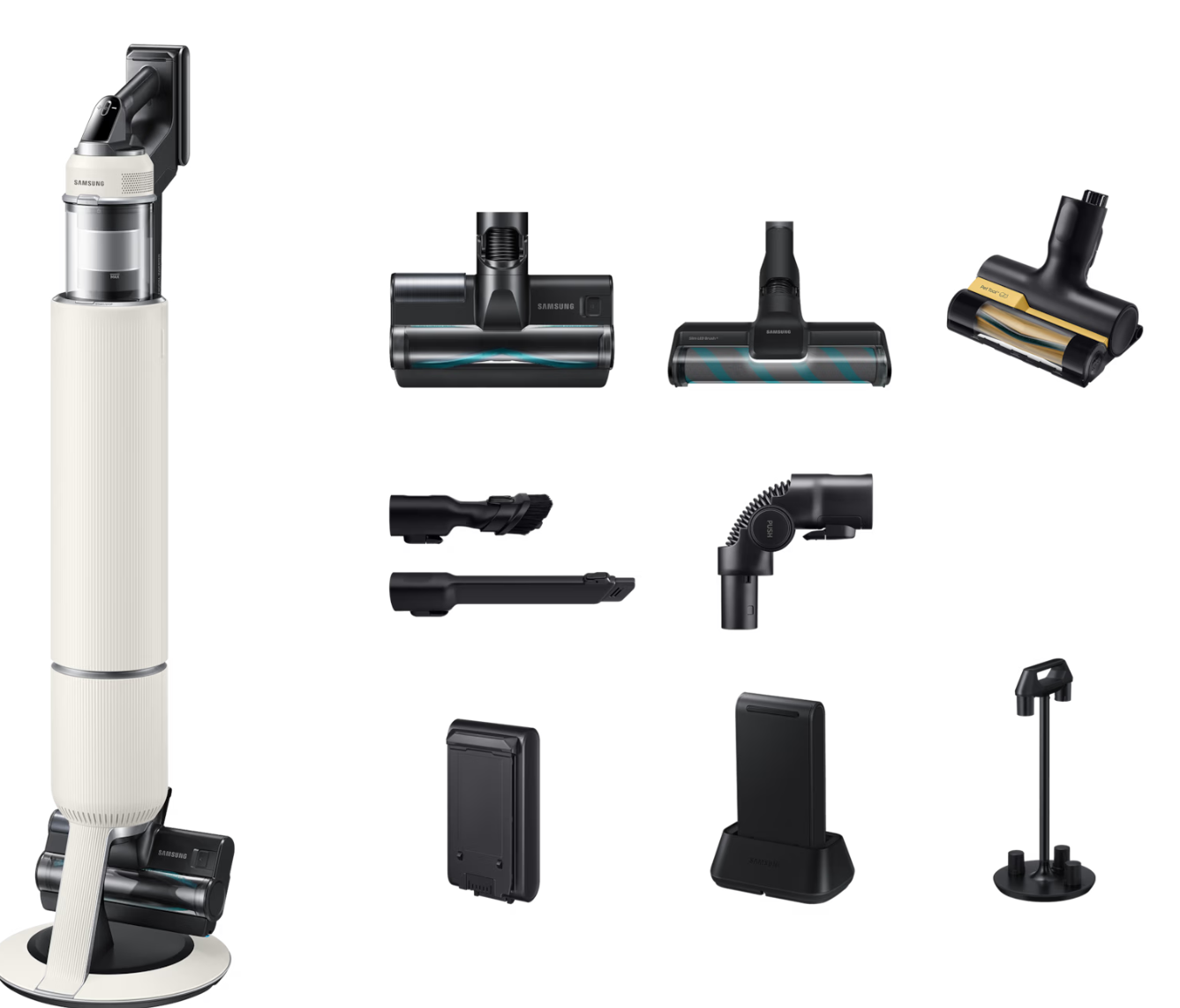 Il Samsung Bespoke AI Jet Lite Complete Extra VS80F28DES è un aspirapolvere senza filo da 280W con tecnologia AI integrata. Leggero e potente, offre un'aspirazione profonda su ogni superficie, con design Beige Bespoke elegante e kit accessori completo.
