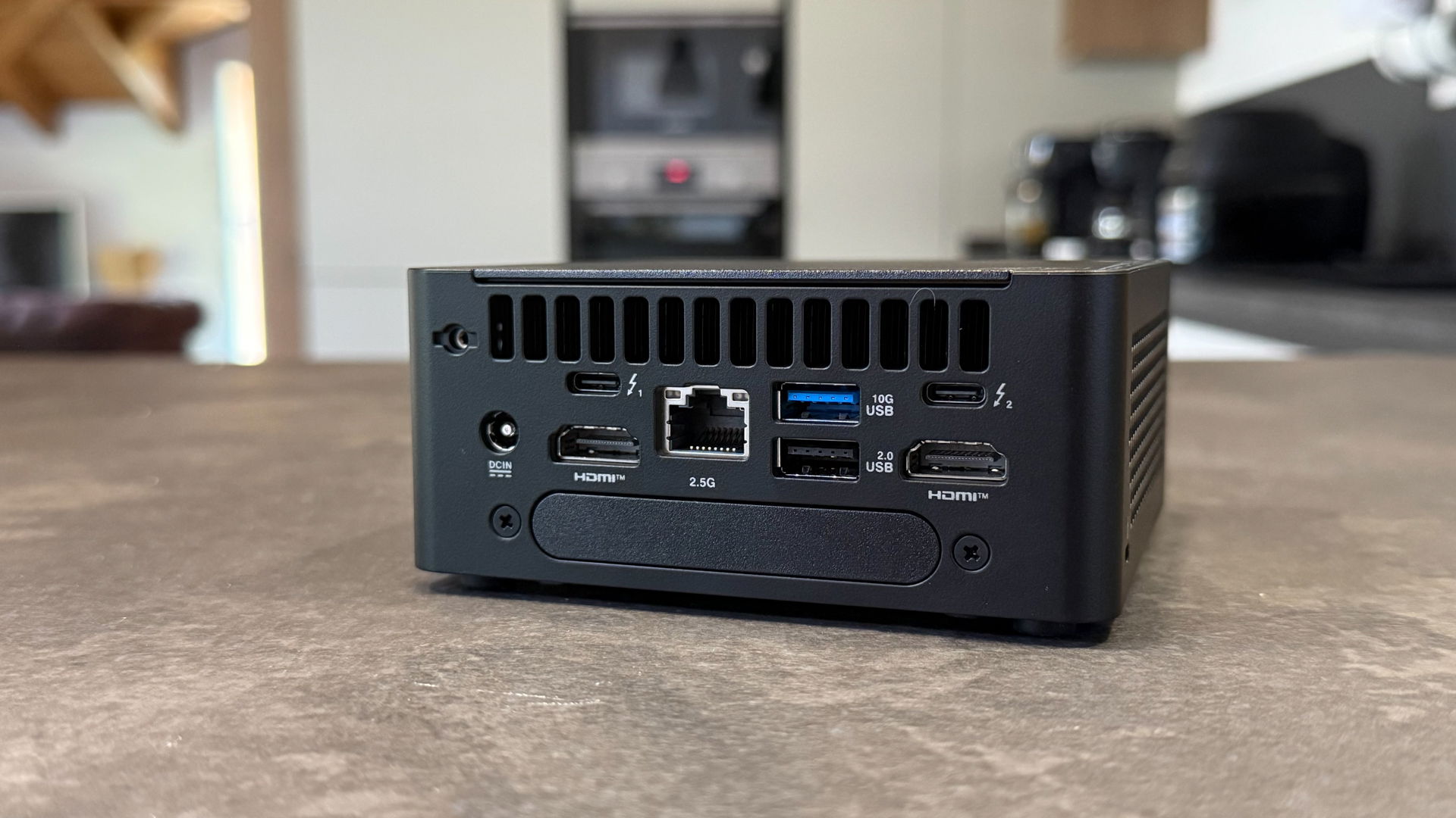 La connettività rappresenta uno dei punti di forza di questo NUC. Le due porte Thunderbolt 4 supportano DisplayPort 2.1 e USB4, permettendo di collegare fino a quattro monitor 4K simultaneamente quando combinate con le due uscite HDMI 2.1. Supportano anche l'uso di eGPU, aprendo a scenari ibridi dove una scheda video esterna viene usata per migliorare le prestazioni nei giochi, nei software professionali o nell'intelligenza artificiale.