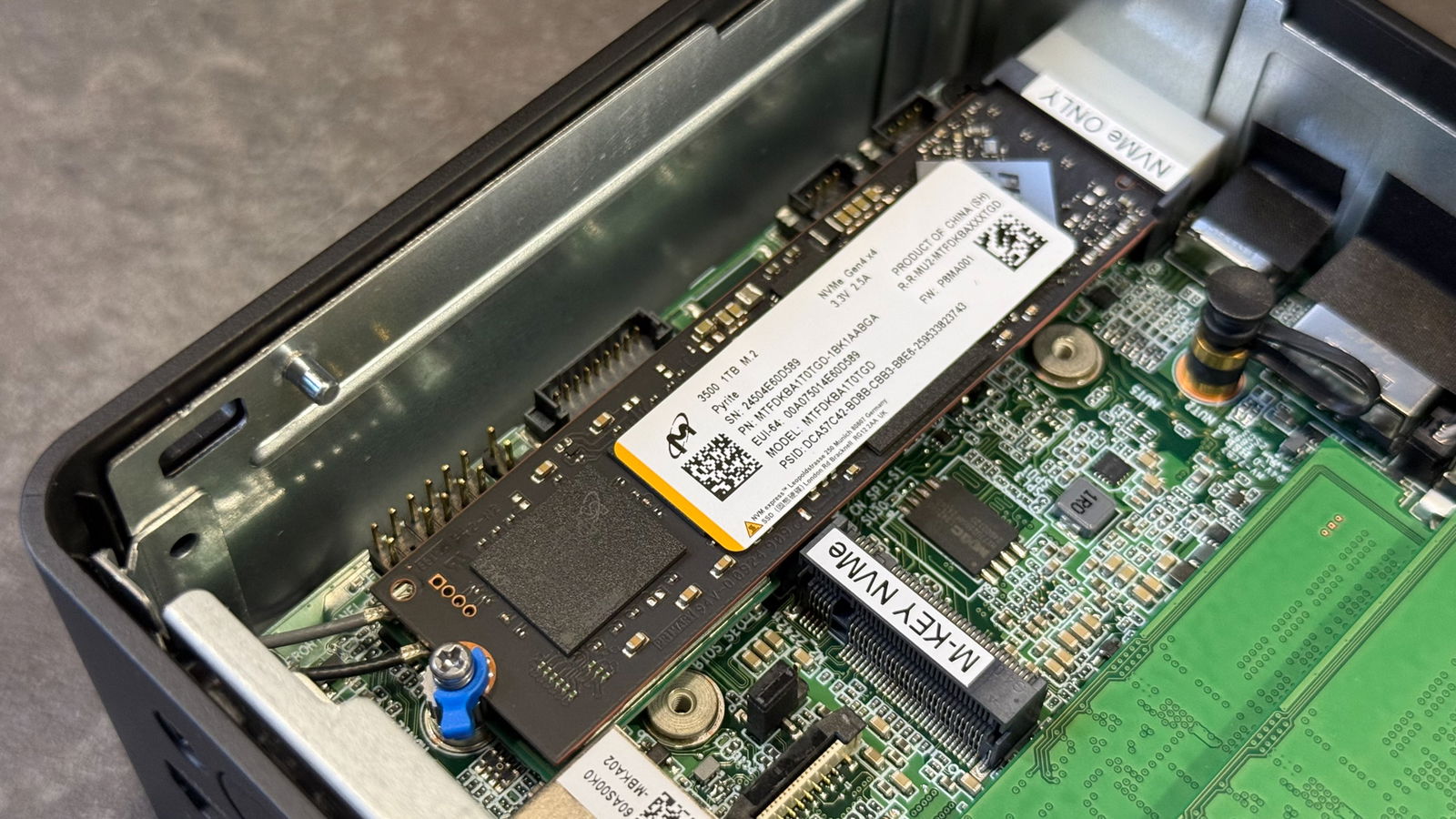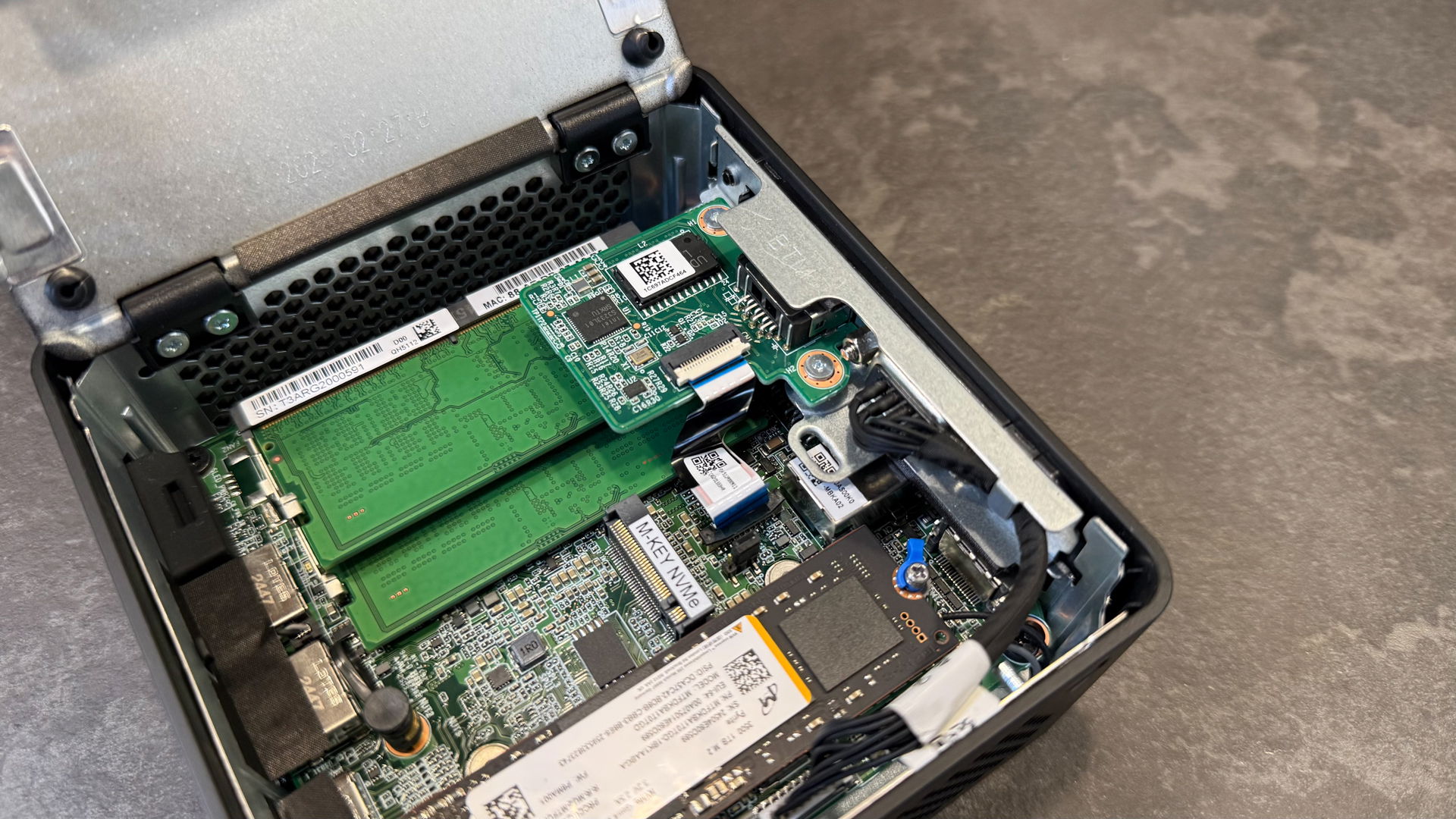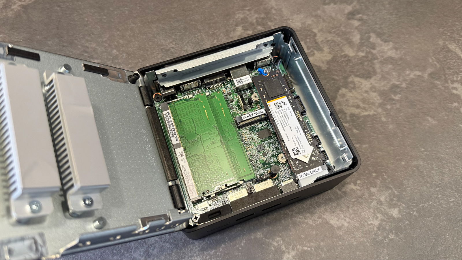 Parlando dell'espandibilità, l'accesso al RAM e archiviazione è veramente immediato: basta allentare la vite che tiene ferma la "maniglia" dello sportello e sollevare per aprirlo, mettendo in mostra i due slot M.2-2280 e M.2-2242 e i due slot SO-DIMM. Installare RAM e storage richiede pochi minuti, lo stesso vale per le schede d'espansione: è sufficiente togliere la placca in plastica tenuta ferma da 2 viti, inserire l'accessorio che si vuole installare, rimettere le viti e collegare i cavi.