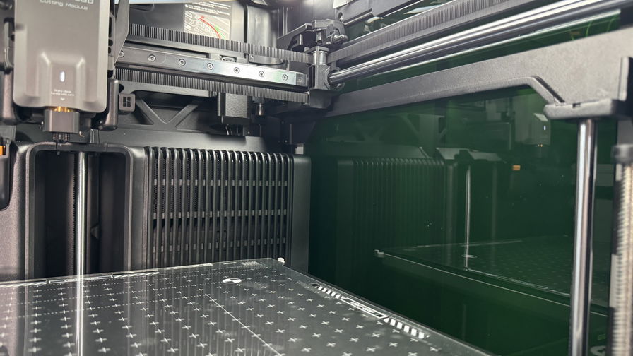 L'H2D è dotata anche di ventole e prese d'aria automatiche che si aprono e chiudono per gestire varie situazioni. Una presa d'aria di aspirazione sulla parte superiore si apre quando serve aria fresca per la stampa di PLA o PETG, o per spingere aria nel sistema di filtrazione. Una presa d'aria posteriore può aprirsi o chiudersi secondo necessità, per gli stessi scopi. L'H2D può chiudere le prese d'aria per trattenere il calore per la stampa ad alta temperatura, o in caso d’incendio anche per interrompere il flusso d'aria per soffocare le fiamme. Un riscaldatore attivo può aumentare la temperatura interna fino a 65 °C per i materiali che lo richiedono. Questo significa che l'H2D può gestire qualsiasi cosa con la porta chiusa, cosa che non vale per molti altri modelli economici dove, per evitare errori di stampa, ad esempio con il PLA, è sempre suggerito tenere lo sportello aperto o rimuovere delle paratie (per le stampanti che lo permettono).