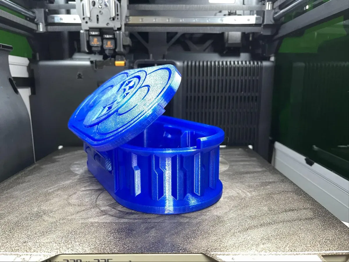 Per quanto riguarda il PETG, è stata stampata una grande scatola usando PETG riciclato. La stampa è durata poco più di 10 ore, con layer da 0.2 mm e impostazioni standard. Il risultato è stato una superficie liscia, priva di difetti evidenti o fili, segno che la macchina è ben ottimizzata anche per i materiali più soggetti a “stringing”. Durante la stampa è stato necessario controllare il sistema di ventilazione: un errore nel collegamento del tubo di scarico ha causato un surriscaldamento interno fino a 45°C, attivando l’allarme. Una volta risolto, la temperatura in camera si è stabilizzata attorno ai 30°C, garantendo la riuscita ottimale dell’oggetto. Da notare che la stampante è pensata per operare con la porta chiusa, ma consente di proseguire anche con la porta aperta, mostrando un simpatico richiamo visivo tramite l’assistente virtuale.