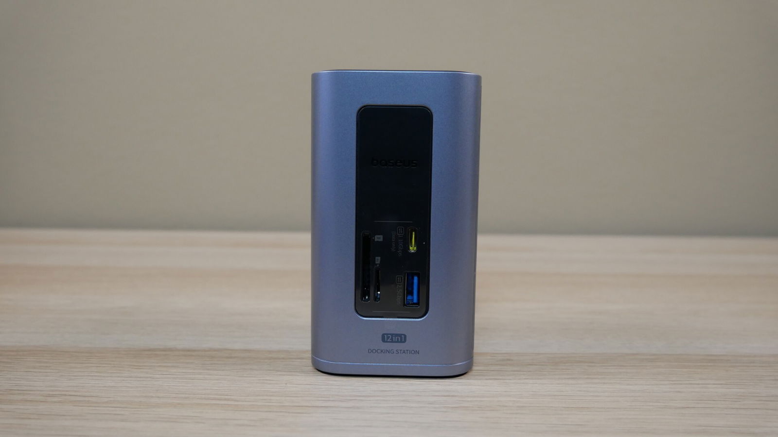 Il Baseus Nomos NU1 Air 12-in-1 Docking Station è un piccolo ma potente Hub in grado di offrire ben 12 connessioni a tutti coloro che ne hanno bisogno. In un corpo verticale in alluminio, compatto e solido, racchiude dodici porte che permettono di collegare monitor, periferiche, rete e dispositivi di archiviazione con un solo cavo. Offre due uscite HDMI fino a 4K a 60 Hz, porte USB-C e USB-A ad alta velocità, lettori di schede SD e microSD e una porta Ethernet Gigabit, mentre l’alimentazione Power Delivery da 100 W consente di ricaricare il laptop durante l’uso.