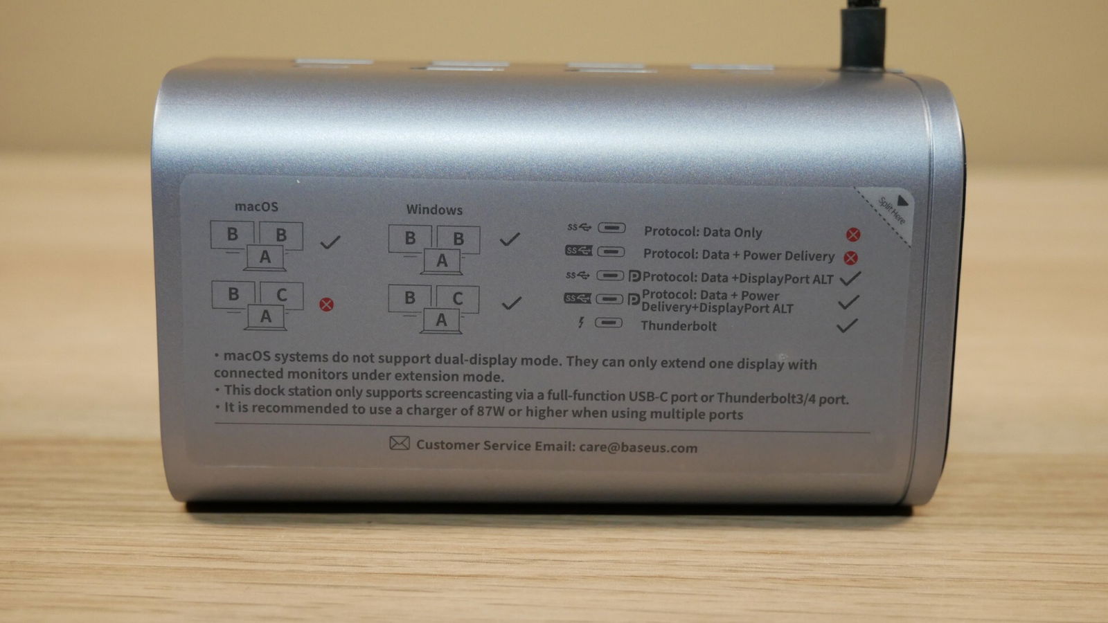 Un punto da considerare è che la velocità massima del trasferimento dati è di “solo” 10 Gbps, quindi non al livello dei dock top-gamma che possono offrire di più, anche se crediamo che per la maggior parte delle persone non sarà un problema. In fase di trasferimenti di file grandi – ad esempio file video pesanti o uso simultaneo di SSD ad alte prestazioni – si nota un rallentamento rispetto a quanto sarebbe possibile con soluzioni più “potenti”. Per quanto riguarda i monitor, sebbene supporti più display, su sistemi Mac la funzionalità multi-schermo risulta limitata rispetto a Windows.