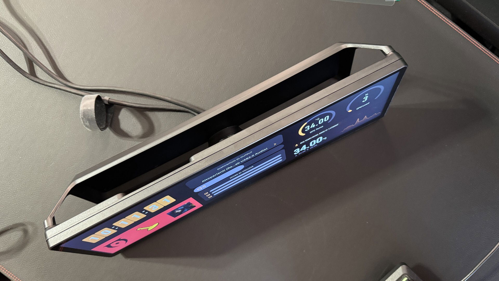 Dal punto di vista dell’ergonomia e dell’organizzazione, la versatilità di montaggio consente di collocarlo nel punto più funzionale per l’utente: accanto alla tastiera come centro comandi, fissato al case per monitoraggio visivo immediato, oppure su un braccio vicino alla webcam per funzioni legate allo streaming.