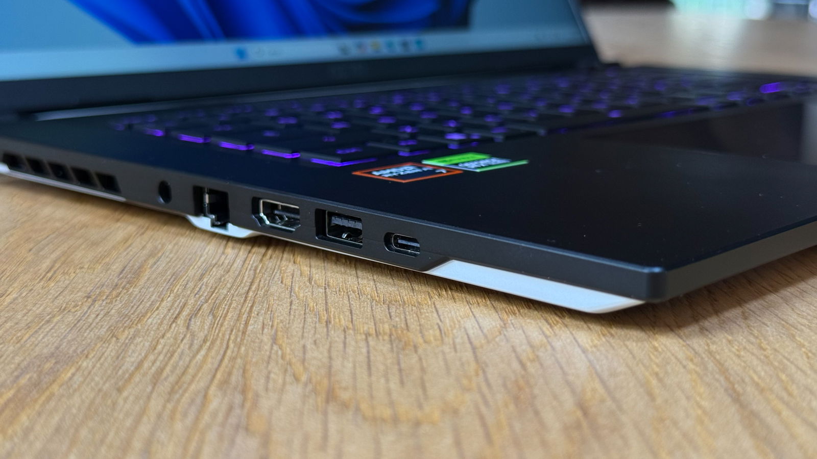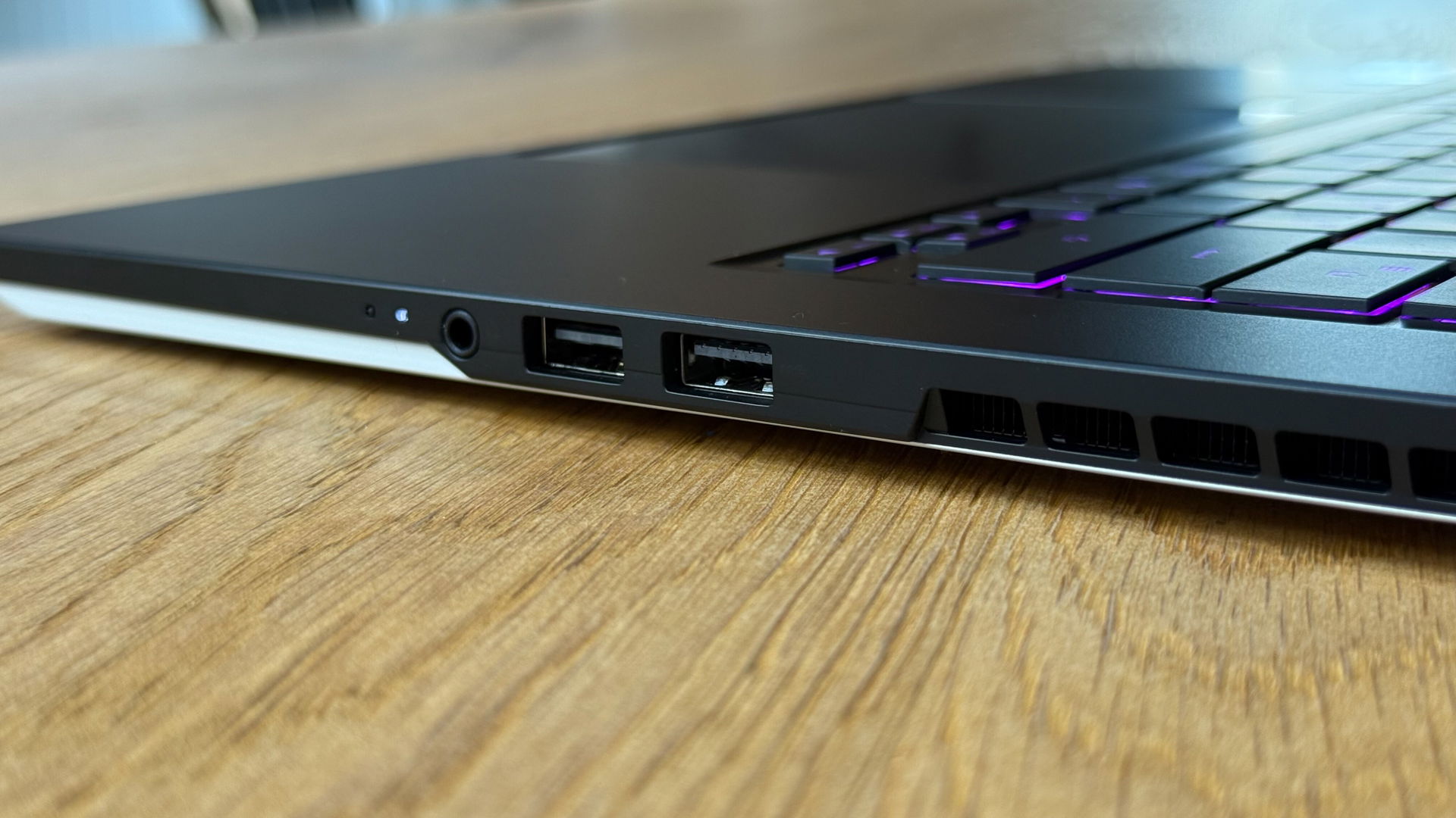 La dotazione di porte include una HDMI 2.1 (supporto fino a 4K@120Hz), un lettore di schede SD a piena dimensione (UHS-II), due porte USB 3.2 Gen2 Type-A e un jack audio combo, oltre a una USB4 con Power Delivery e supporto all'uscita DisplayPort e a una USB 2.0, anacronistica e discutibile in un laptop premium del 2025. L'assenza di una porta Ethernet RJ45 fisica è compensata dal supporto al Wi-Fi 6E, sebbene la mancanza del Wi-Fi 7 rappresenti un'occasione persa.