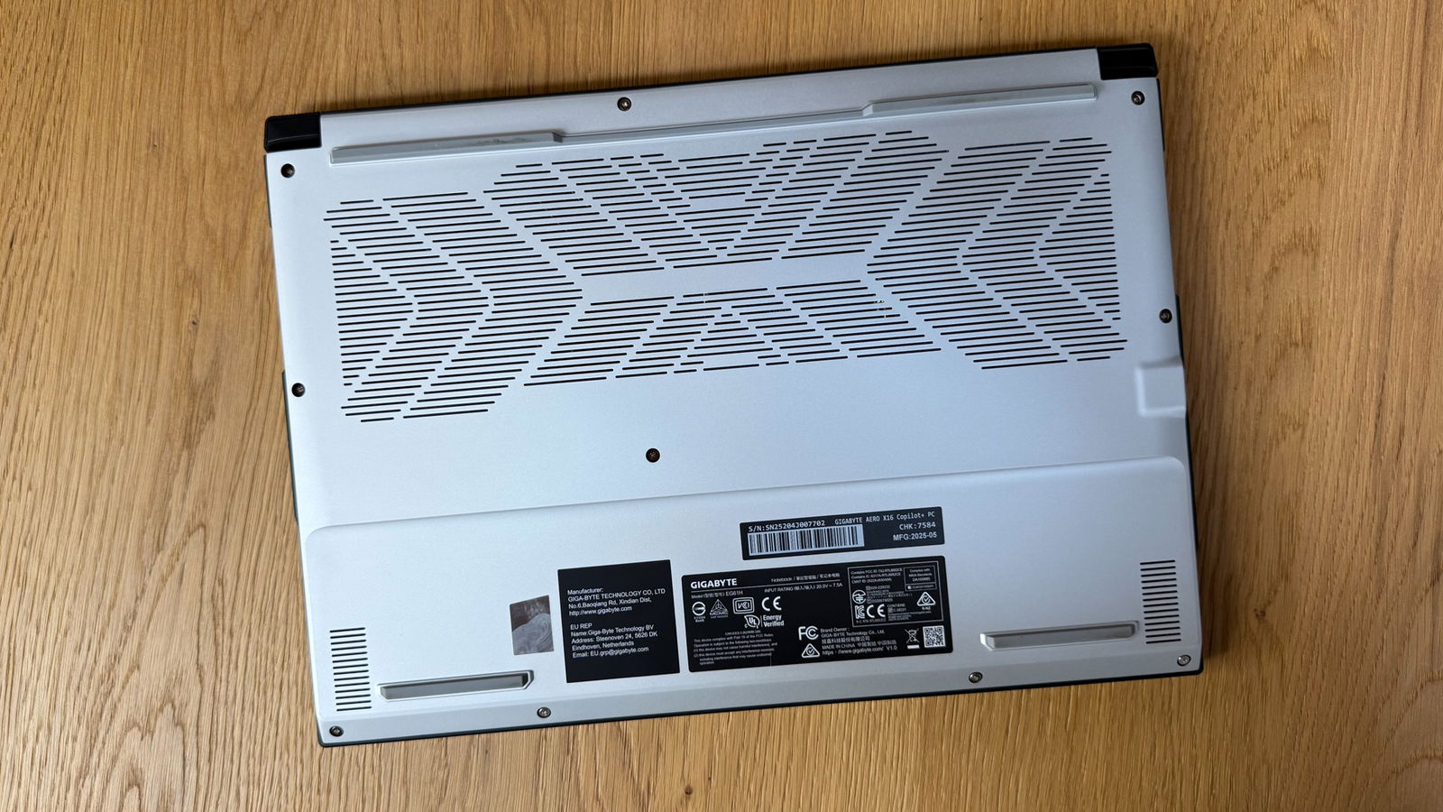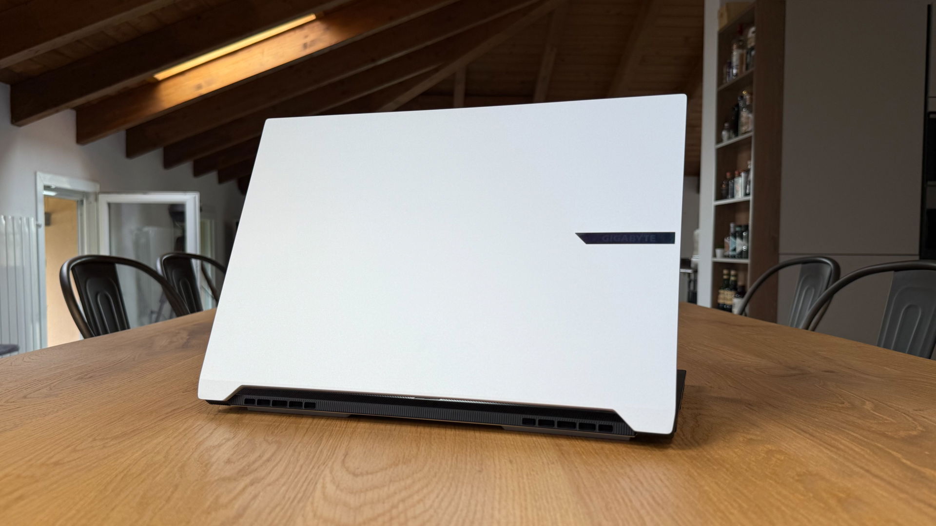 Il design dell'Aero X16 bilancia estetica minimalista e funzionalità. La scocca in plastica rinforzata, disponibile in grigio scuro o bianco, misura 16,7-19,9 mm di spessore con un peso di 1,97 kg. La superficie, sebbene elegante, tende a trattenere le impronte, richiedendo una pulizia frequente. I bordi ridotti su tutti e quattro i lati massimizzano lo spazio dello schermo, favorendo l'immersività durante attività creative o gaming.