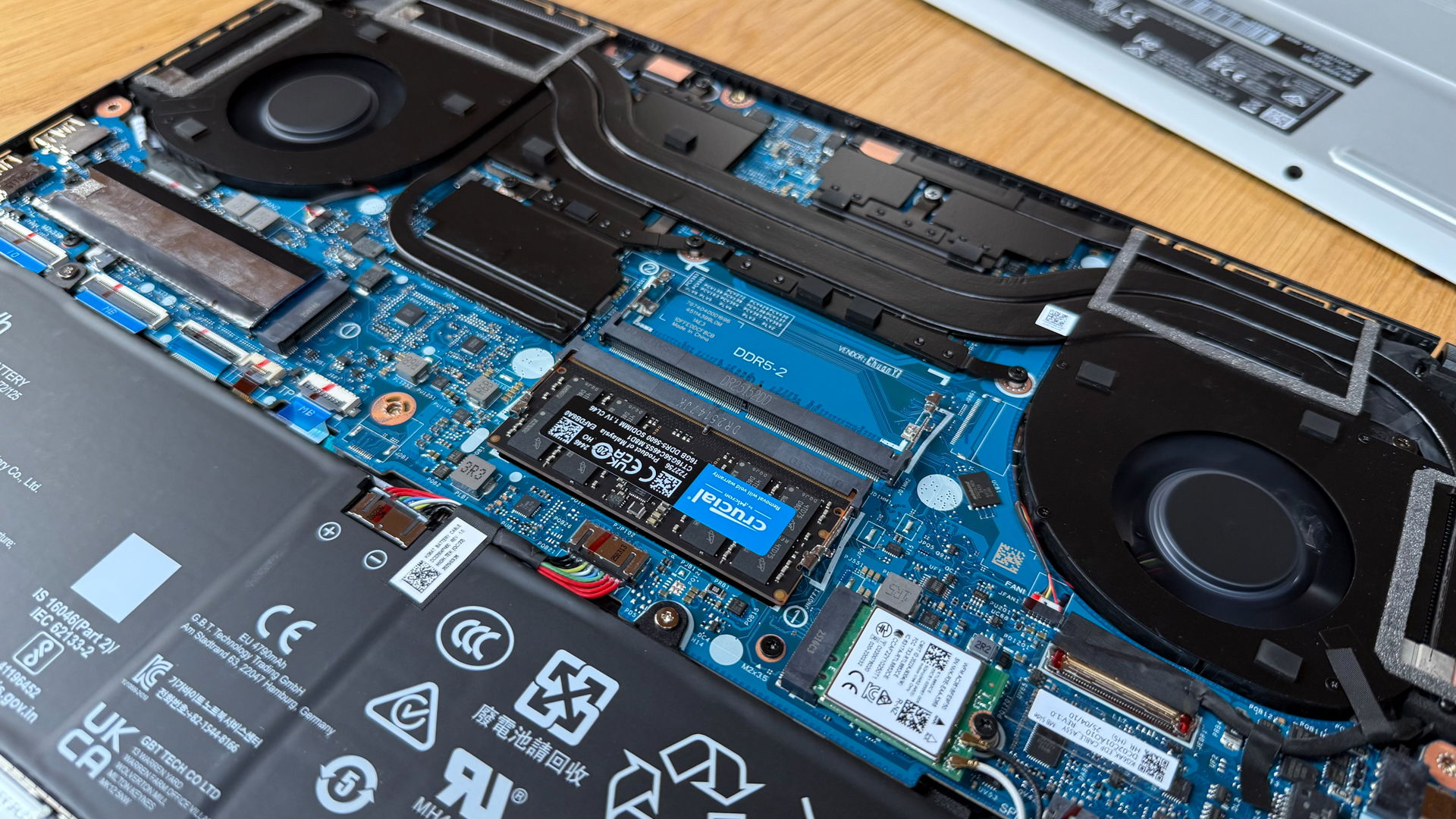La configurazione di memoria prevede fino a 64GB di RAM DDR5-5600 in dual channel (ci sono 2 slot SO-DIMM), nel nostro modello era installato un singolo modulo da 16GB. Lo storage prevede due slot M.2 NVMe PCIe 4.0: uno x4 (7000 MB/s) e uno x2 (3500 MB/s). La facilità di upgrade rappresenta un vantaggio da non sottovalutare rispetto ai modelli con RAM saldata, estendendo potenzialmente la vita utile del dispositivo.