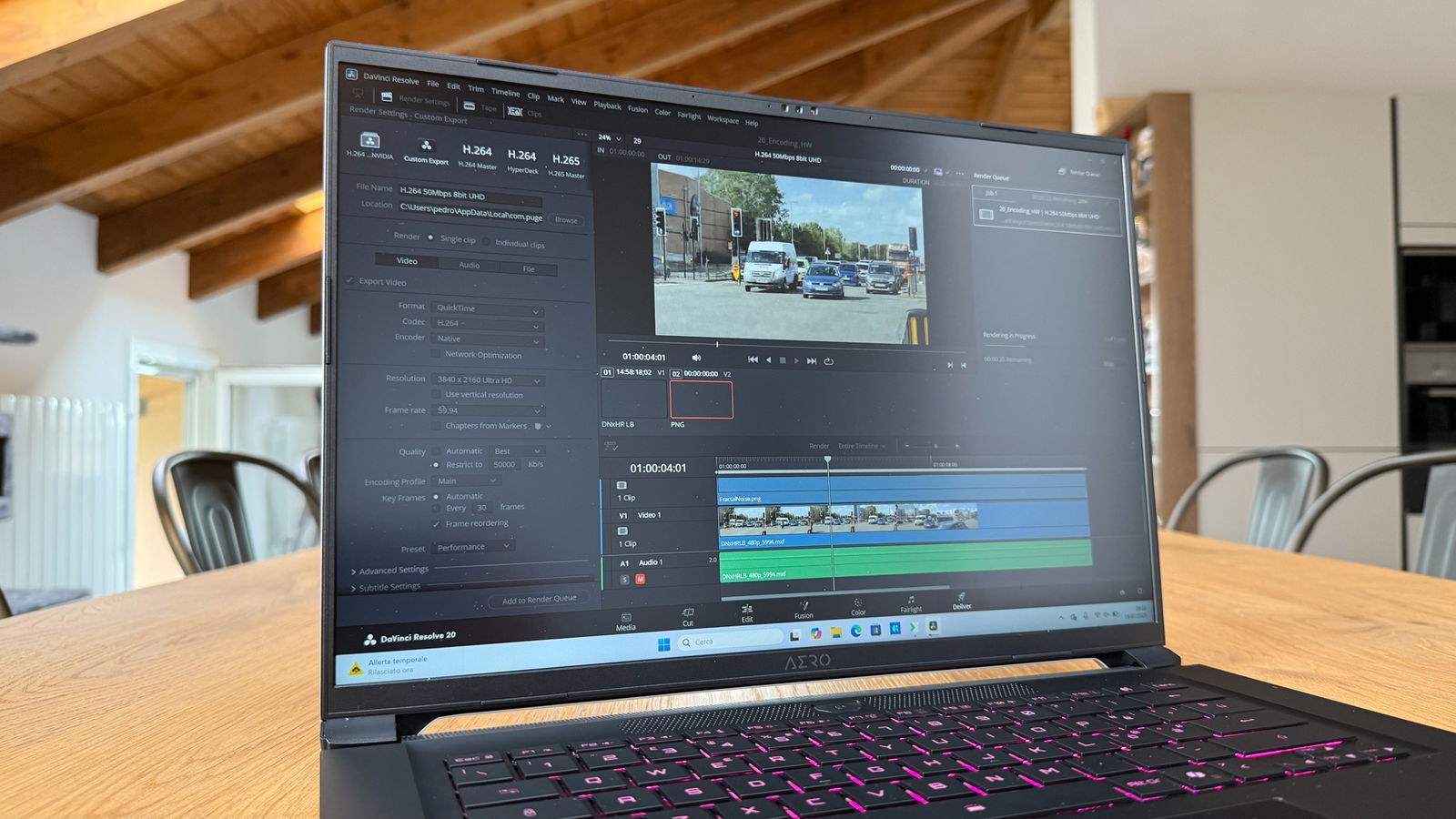 Al contrario, il laptop si comporta bene nell'editing video, uno dei campi d'applicazione principali di questo laptop. Si riescono a gestire anche progetti in 4K senza particolari difficoltà, che vendono renderizzati ed esportati velocemente grazie anche alla presenza dell'encoder NVENC della RTX 5060. Con progetti 8K c'è qualche problema di stuttering, legato soprattutto alla saturazione della memoria video a disposizione.