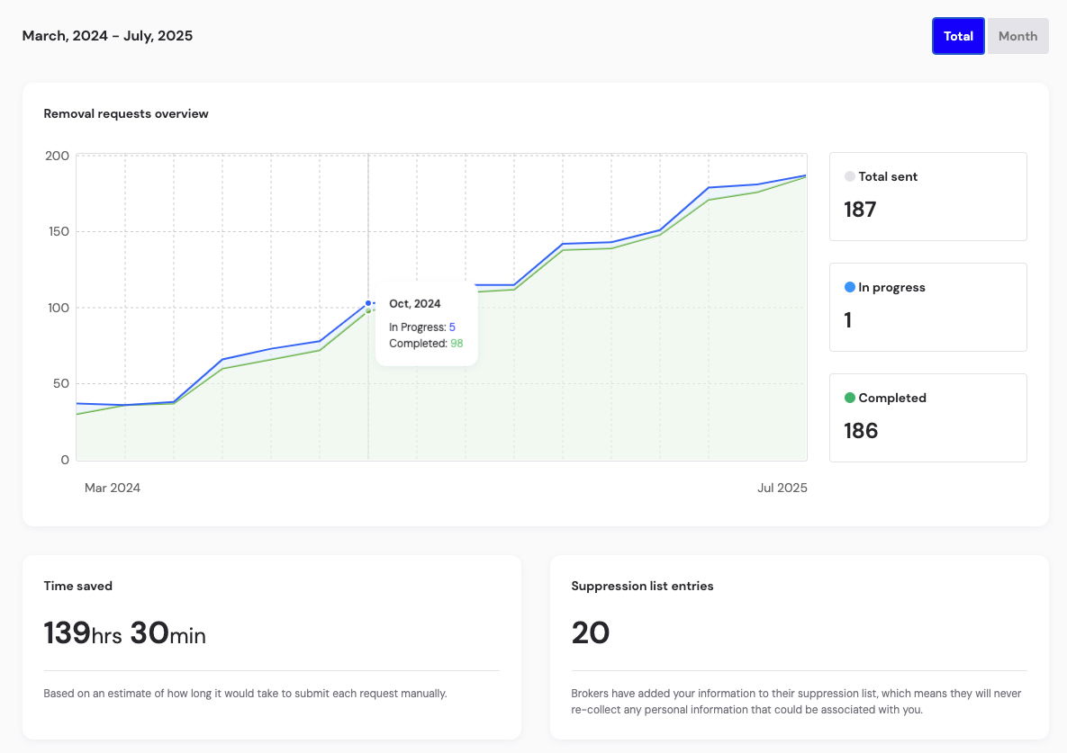 In secondo luogo, pur offrendo una dashboard funzionale, il livello di dettaglio dei report potrebbe essere migliorato. Sarebbe utile, ad esempio, poter visualizzare quali dati sono stati effettivamente rimossi, o avere accesso a copie delle risposte dei broker. Inoltre, l’assenza di una chat in tempo reale o di un supporto telefonico limita le possibilità di assistenza diretta.