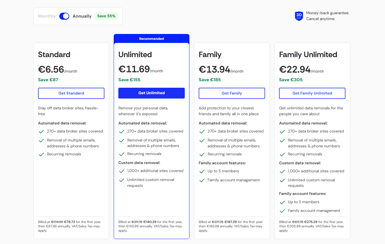 Incogni viene proposto come servizio in abbonamento, con due formule principali: mensile e annuale. Il piano mensile, dal costo di 14,48 euro, è adatto a chi vuole testare il servizio per un breve periodo, anche se, considerando che i tempi di elaborazione delle richieste possono variare tra i 30 e i 45 giorni, potrebbe non essere la scelta più efficiente.