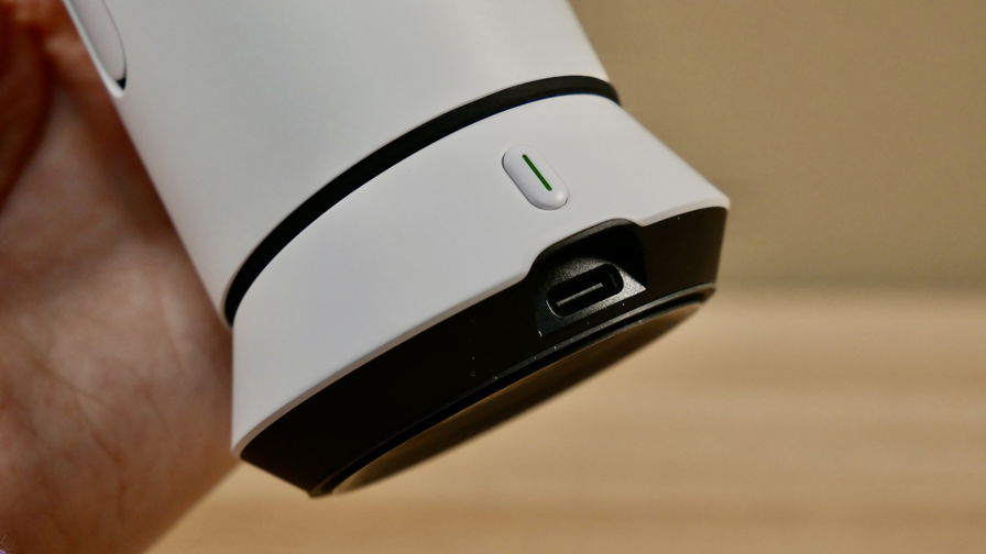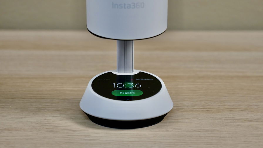 Con un peso di 490 grammi, l'Insta360 Wave è sufficientemente stabile da resistere a leggeri urti accidentali, mentre una ventosa integrata nella base fornisce ulteriore aderenza alle superfici lisce. La parte superiore del cilindro è progettata specificamente per connettere la webcam Insta360 Link 2 mediante punti di contatto magnetici che consentono sia il fissaggio meccanico che la trasmissione dati tra i due dispositivi.