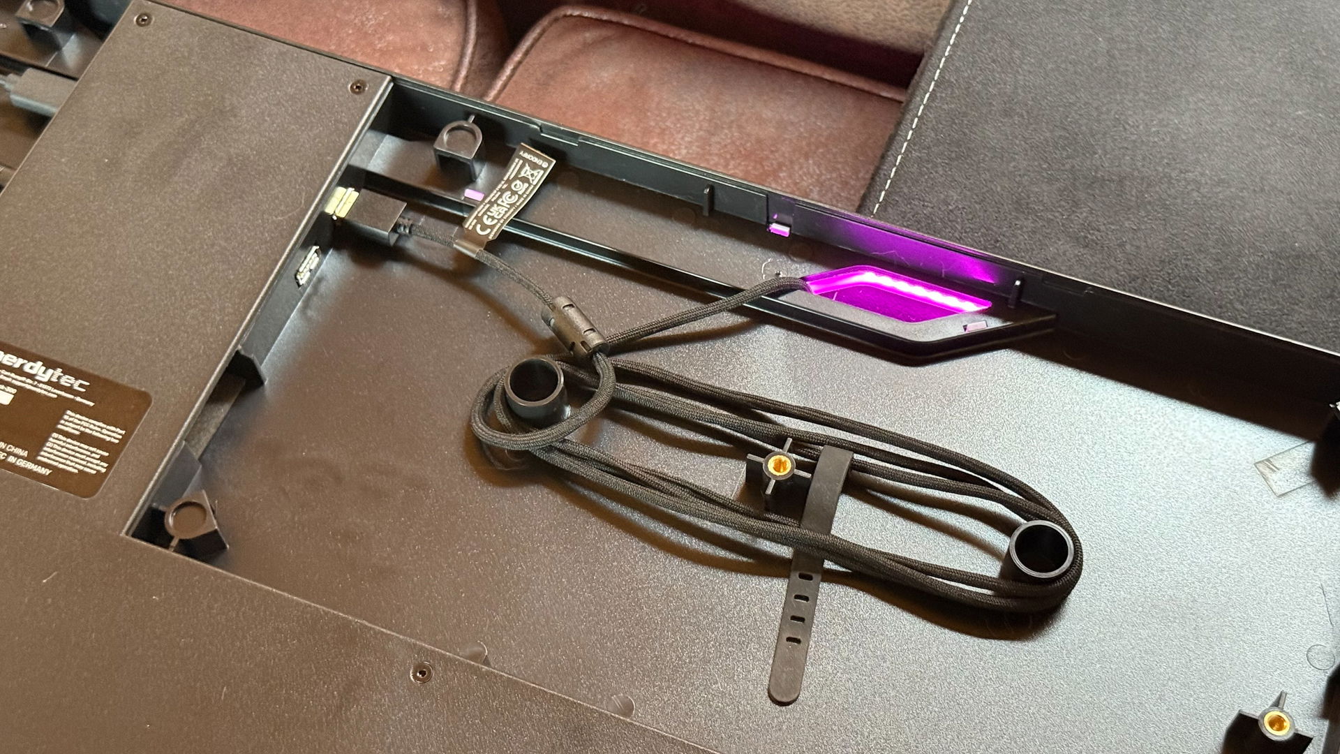 Nella confezione del Couchmaster Cycon 3 sono inclusi diversi accessori che completano l'esperienza d'uso. Oltre ai già menzionati cuscini laterali e all'alimentatore esterno, troviamo un tappetino per mouse da applicare sul piano tramite nastro adesivo 3M, delle strisce di velcro per tenere immobile la tastiera anche durante i momenti più concitati e una tasca, anche questa da applicare col nastro, in cui inserire il mouse quando non in uso.