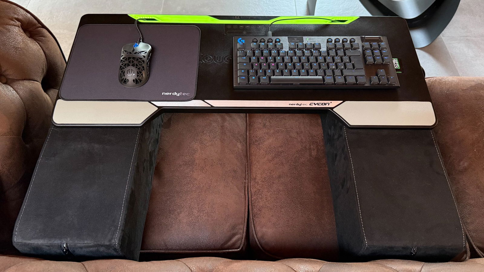 Nell'uso quotidiano, il Couchmaster Cycon 3 si rivela un prodotto che cambia radicalmente l'esperienza di gaming e lavoro dal divano. La prima cosa che colpisce è la stabilità dell'insieme: nonostante la struttura non sia ancorata in nessun modo, una volta posizionato correttamente, il supporto rimane saldo anche durante sessioni di gioco intense che coinvolgono movimenti rapidi del mouse, o una pressione frenetica dei tasti sulla tastiera. I cuscini in memory foam si adattano rapidamente alla forma del divano e del corpo dell'utente, creando una base stabile che non richiede continui riposizionamenti.