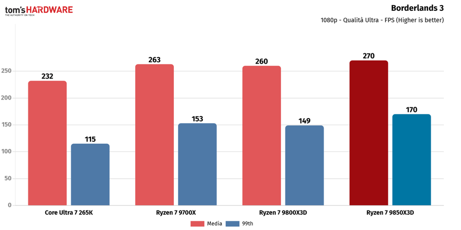 Finché la differenza tra i due sarà così marcata, allora varrà sempre la pena risparmiare dei soldi (o investirli in altri componenti) e acquistare il 9800X3D, che è più fresco, consuma meno e ha prestazioni pressoché identiche in moltissimi scenari, soprattutto se si guarda al gaming; il Ryzen 7 9850X3D diventerà veramente interessante solo quando avrà un prezzo molto vicino (se non identico) al 9800X3D.