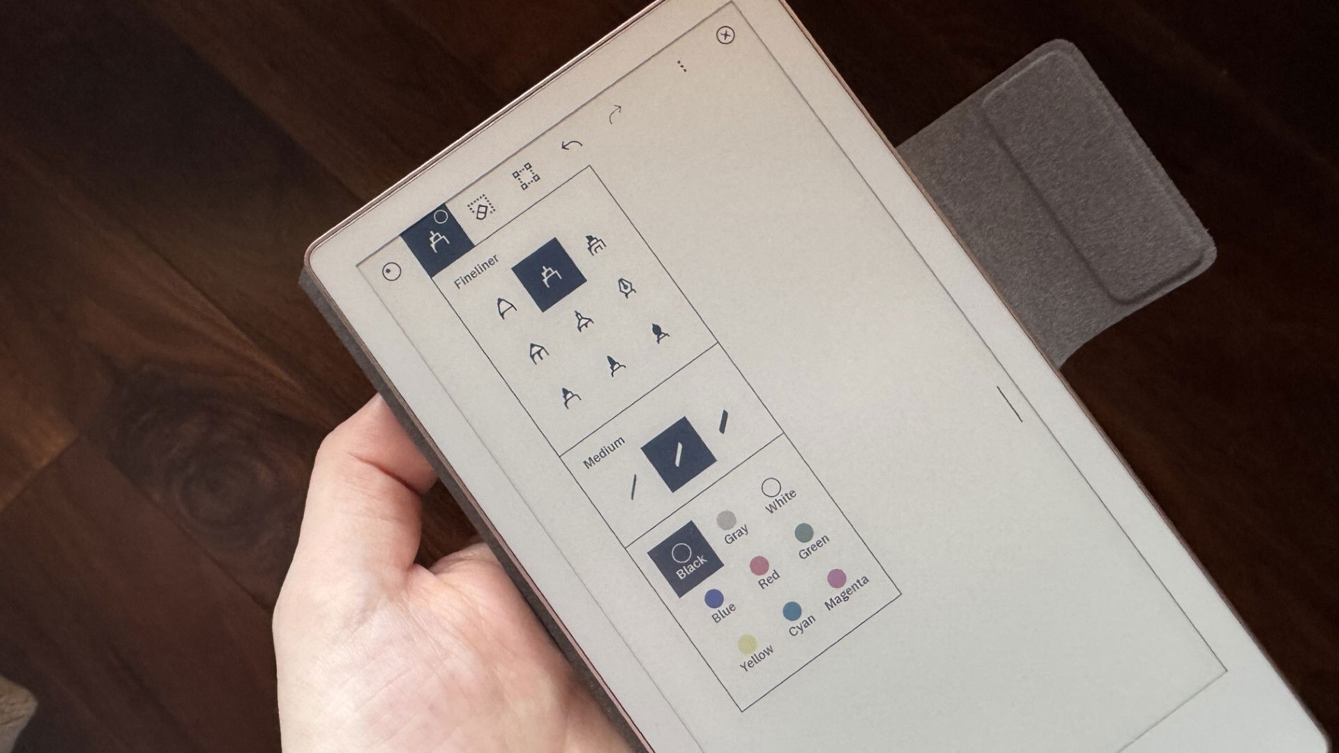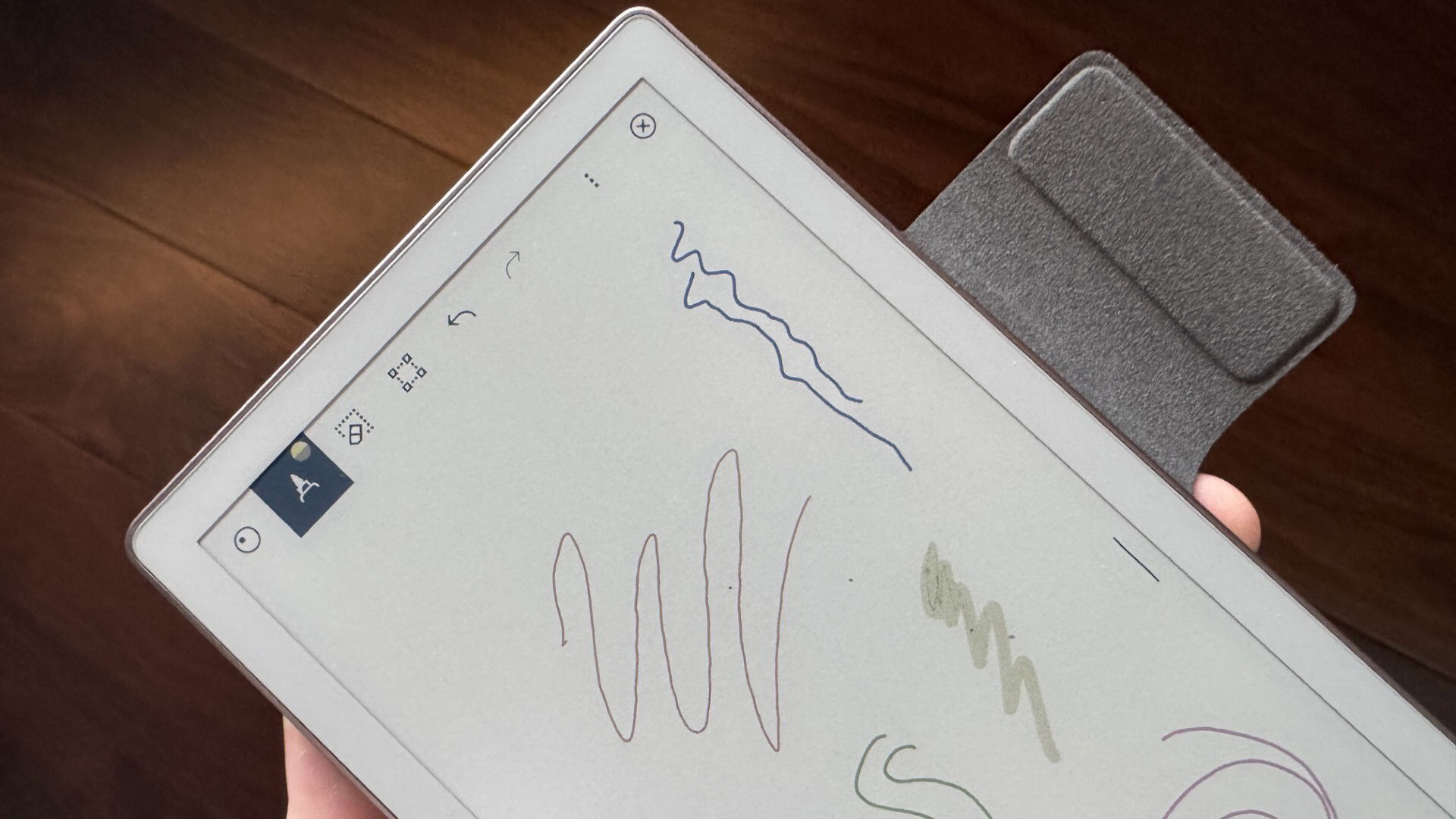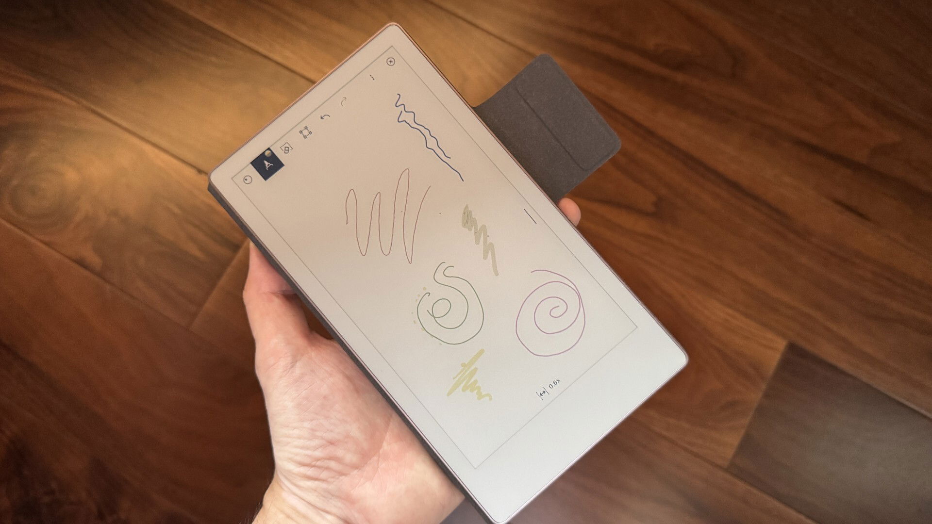 Dal punto di vista software l’utente ha a disposizione diversi strumenti di scrittura e disegno: penne, pennelli, matite digitali, evidenziatori e gomme, tutti regolabili in spessore e resa. A questo si aggiunge la possibilità di sfruttare i colori primari e secondari resi possibili dalla tecnologia a inchiostro digitale, insieme ai toni intermedi che consentono un’ampia varietà di sfumature. Non è un dispositivo pensato per la grafica artistica avanzata, ma per chi ha bisogno di differenziare concetti, sottolineare informazioni o arricchire uno schema con accenti cromatici, le possibilità sono più che adeguate.