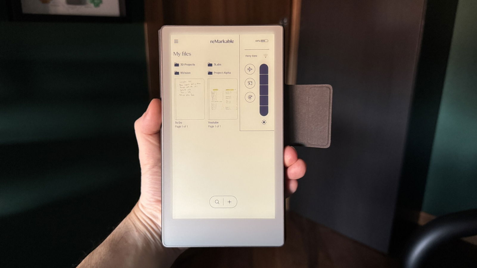 L’esperienza d’uso del reMarkable Paper Pro Move è stata pensata attorno a un concetto chiave: avere sempre a disposizione uno strumento pratico e immediato per catturare idee, senza le distrazioni tipiche di smartphone e computer. La prima sensazione che restituisce è quella di portabilità estrema: le dimensioni compatte e il peso piuma permettono di tenerlo in mano come un piccolo taccuino, scrivere anche stando in piedi e riporlo facilmente in tasca o in borsa. È il classico dispositivo che si porta con sé senza pensarci troppo, e questa naturalezza d’uso lo distingue nettamente dagli altri modelli della gamma. La penna, sempre collegata nel bordo destro (mentre si ricarica) non mancherà mai.